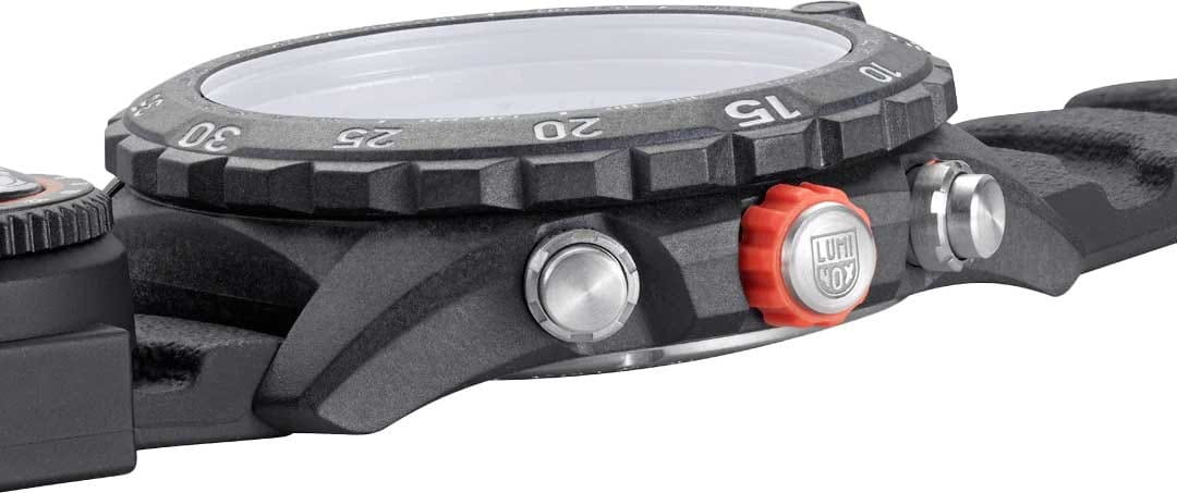 Мужские наручные часы-хронографХронографФункция позволяет измерять отрезки времени с особой точностью: часы, минуты, секунды. Верным признаком хронографа является наличие на циферблате 3 дополнительных окошек-счётчиков. Luminox Bear Grylls Survival Series XB.3748 разработаны для любителей активного образа жизни и экстремальных условий. Эти часы созданы в сотрудничестве с Беаром Гриллсом, известным путешественником и специалистом по выживанию в экстремальных условиях. Модель оборудована кварцевым механизмом Ronda 5030.D, предоставляющим надежность и точность показаний. Корпус, выполненный из пластика, усиленного карбоном, обеспечивает легкость и прочность, а серый циферблат защищен сапфировым стекломСапфировое стеклоПрочный и надёжный материал из кристалла сапфира синтетического происхождения, характеризующийся особой твёрдостью и устойчивостью к царапинам и повреждениям. с антибликовым покрытиемАнтибликовое покрытиеСлой оксида металла в 0,13-0,3 микрон, благодаря которому стекло часов не бликует и не отражает свет. Антибликовое покрытие уменьшает отражение света в 10 раз, обеспечивая отличную читаемость показателей циферблата.. Часы обладают функцией хронографаХронографФункция позволяет измерять отрезки времени с особой точностью: часы, минуты, секунды. Верным признаком хронографа является наличие на циферблате 3 дополнительных окошек-счётчиков. с секундомеромСекундомерСекундоме́р — прибор, способный измерять интервалы времени с точностью до долей секунды., позволяющим измерять короткие промежутки времени, а также показывают время в 12-ти и 24-х часовом формате. Счетчик регистрирует секунды, минуты и часы, а центральная секундная стрелка используется как секундная стрелка секундомера. Специальная технология LLTLLTLLT — это автономный механизм подсветки, основанный на использовании микроскопических газонаполненных элементов. Специальные герметичные капсулы из боросиликатного стекла, интегрированные в циферблат, генерируют свечение без необходимости подключения к внешним источникам энергии. Для их работы не требуется ни дополнительный свет, ни механическое воздействие (например, нажатие кнопки). Свечение возникает благодаря химическому процессу: реакция между тритием, заключенным в капсулах, и люминофорным покрытием создает стабильное автономное освещение. Технология обеспечивает энергетическую независимость и долговечность подсветки. обеспечивает непревзойденную ночную видимость на протяжении 25 лет. Водозащита уровня 300WR позволяет использовать часы в условиях высокой влажности и при погружениях. Окошко даты расположено в позиции 6 часов, а вращающийся в одном направлении безельБезельВнешний ободок, закрепляющий стекло. В спортивных часах так называется поворотное кольцо с делениями на циферблате, выполняет роль таймера – замеряет отрезки времени на шкале. Неподвижный безель – элемент декора. Однонаправленно вращающийся безель на дайверских часах позволяет фиксировать моменты погружения и выныривания на поверхность. имеет светящуюся метку на 12 часов. Завинчивающаяся заводная головка с защитой и оранжевым прорезиненным кольцом обеспечивает надежное сцепление, что особенно важно для подводных работ. На завинчивающейся стальной задней крышке выгравированы надпись «Never Give Up» и автограф Беара Гриллса, что подч