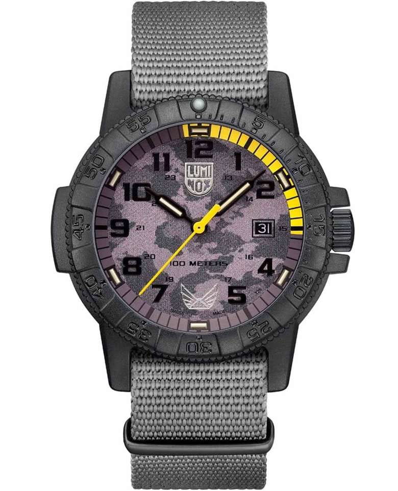 Часы Luminox X Volition America Leatherback Sea Turtle Giant XS.0321.BO.VOL представляют собой элегантное сочетание стиля и функциональности. Выполненные в эксклюзивном цвете Thunder Grey, они привлекают внимание своим уникальным дизайном. Циферблат украшен фирменным камуфляжным рисунком Volition с яркими желтыми акцентами, включая индикатор погружения и секундную стрелку. Черный корпус и безельБезельВнешний ободок, закрепляющий стекло. В спортивных часах так называется поворотное кольцо с делениями на циферблате, выполняет роль таймера – замеряет отрезки времени на шкале. Неподвижный безель – элемент декора. Однонаправленно вращающийся безель на дайверских часах позволяет фиксировать моменты погружения и выныривания на поверхность. часов выполнены из карбонаКарбонОт «carbon», «carbone» - углерод, углепластик - полимерный композиционный материал из переплетённых под определенным углом между собой нитей углеродного волокна, применяется для изготовления лёгких, но прочных деталей. В часах часто используют для украшения циферблатов и ремешков. Так же карбон используется в изготовлении корпусов. Такие корпуса обладают антикоррозионным свойством, не поддаются электромагнитному излучению, обладают повышенной прочностью и противоударностью. CARBONOX, что обеспечивает прочность и легкость конструкции. Логотип Volition, расположенный на 6 часах, подчеркивает благотворительный дух бренда. Эти часы обладают водонепроницаемостью до 100 метров, что делает их идеальными для активного образа жизни. Они оснащены проверенной системой освещения Luminox Light Technology, благодаря которой циферблат всегда остается видимым, независимо от условий освещения, с автономной работой до 25 лет. Часы оснащены механизмом Ronda 515 HH6 и обладают множеством технических характеристик, включая вращающийся в одном направлении безельБезельВнешний ободок, закрепляющий стекло. В спортивных часах так называется поворотное кольцо с делениями на циферблате, выполняет роль таймера – замеряет отрезки времени на шкале. Неподвижный безель – элемент декора. Однонаправленно вращающийся безель на дайверских часах позволяет фиксировать моменты погружения и выныривания на поверхность. с покрытием Superluminova на отметке 12 часов. Закаленное минеральное стеклоМинеральное стеклоМинеральное стекло представляет собой искусственно выращенный минерал кварца. Такое стекло отличается особой устойчивостью к повреждениям и царапинам. Уступает по некоторым качествам сапфировому стеклу. и двойная защитная прокладка на короне обеспечивают дополнительную надежность. Серая тесьма ремешка и классическая застежка дополняют общий стиль и комфорт ношения. Сделанные в Швейцарии, эти часы воплощают в себе высокое качество и современный дизайн.