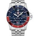 Часы Luminox VOLITION AMERICA Minuteman XS.0914.VOL — истинное воплощение швейцарского качества и современного стиля. Эти мужские часы, оснащённые кварцевым механизмом, предлагают безупречную точность и надёжность, благодаря использованию калибра RONDA 515. Корпус выполнен из высококачественной стали 316L, что придаёт дополнительную прочность и устойчивость к износу. Синий циферблат защищён сапфировым стекломСапфировое стеклоПрочный и надёжный материал из кристалла сапфира синтетического происхождения, характеризующийся особой твёрдостью и устойчивостью к царапинам и повреждениям. с антибликовым покрытиемАнтибликовое покрытиеСлой оксида металла в 0,13-0,3 микрон, благодаря которому стекло часов не бликует и не отражает свет. Антибликовое покрытие уменьшает отражение света в 10 раз, обеспечивая отличную читаемость показателей циферблата., что позволяет с лёгкостью считывать показания даже при ярком освещении. Часы обладают функцией отображения даты и дня недели, расположенной в удобном окошке в позиции 3 часа. Фиксированный безельБезельВнешний ободок, закрепляющий стекло. В спортивных часах так называется поворотное кольцо с делениями на циферблате, выполняет роль таймера – замеряет отрезки времени на шкале. Неподвижный безель – элемент декора. Однонаправленно вращающийся безель на дайверских часах позволяет фиксировать моменты погружения и выныривания на поверхность. из нержавеющей стали 316L с алюминиевой кольцевой вставкой с PVD-покрытиемPVDУльтратонкое покрытие наносится в технике вакуумного напыления, сочетает в себе нитрид титана особой прочности со слоем золота или оксида хрома. Несёт в себе декоративную или защитную функцию. синего и красного цвета обеспечивает дополнительную функциональность и стильный вид. Благодаря технологии LLTLLTLLT — это автономный механизм подсветки, основанный на использовании микроскопических газонаполненных элементов. Специальные герметичные капсулы из боросиликатного стекла, интегрированные в циферблат, генерируют свечение без необходимости подключения к внешним источникам энергии. Для их работы не требуется ни дополнительный свет, ни механическое воздействие (например, нажатие кнопки). Свечение возникает благодаря химическому процессу: реакция между тритием, заключенным в капсулах, и люминофорным покрытием создает стабильное автономное освещение. Технология обеспечивает энергетическую независимость и долговечность подсветки.-подсветки, эти часы гарантируют превосходную видимость в темноте на протяжении 25 лет. Стальной браслет, изготовленный из того же материала, что и корпус, оснащён раскладной застёжкойРаскладная застёжкаТакой тип застёжки используется только на браслетах из металла. Она никогда не раскрывается полностью, происходит разделение на 2 и более частей. Раскладывающая застёжка снизит вероятность потери часов к минимуму. с системой блокировки, обеспечивая надёжную фиксацию на запястье. Водозащита уровня 100WR позволяет использовать часы даже в условиях повышенной влажности. Габаритные размеры составляют 42 мм в диаметре, 13 мм в толщину, с шириной браслета 24 мм и весом 160 г, что делает их идеальным выбором для тех, кто ценит стиль и функциональность в одном аксессуаре.