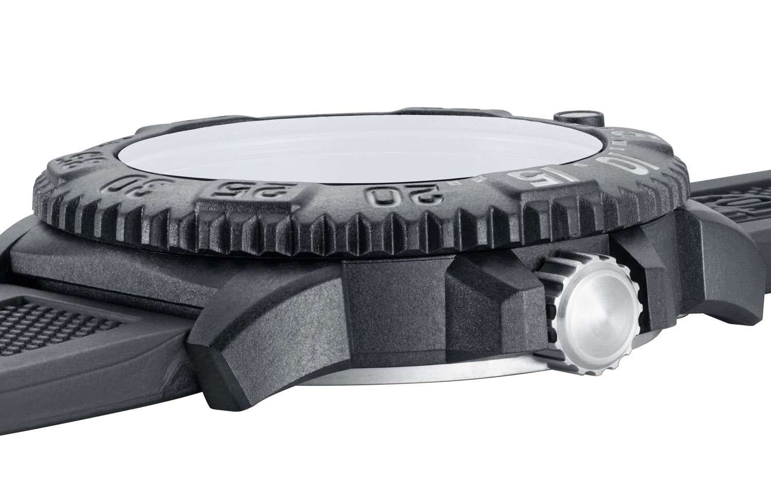Часы Luminox XS.3051.GO.NSF — это воплощение стиля и надежности для мужчин, которые не боятся преодолевать преграды. Швейцарские часы оснащены кварцевым механизмом с калибром Ronda 515 HH6, гарантируя точность и долговечность работы. Корпус выполнен из пластика, усиленного прессованным карбономКарбонОт «carbon», «carbone» - углерод, углепластик - полимерный композиционный материал из переплетённых под определенным углом между собой нитей углеродного волокна, применяется для изготовления лёгких, но прочных деталей. В часах часто используют для украшения циферблатов и ремешков. Так же карбон используется в изготовлении корпусов. Такие корпуса обладают антикоррозионным свойством, не поддаются электромагнитному излучению, обладают повышенной прочностью и противоударностью., что обеспечивает прочность и легкость конструкции. Черный циферблат защищен минеральным стекломМинеральное стеклоМинеральное стекло представляет собой искусственно выращенный минерал кварца. Такое стекло отличается особой устойчивостью к повреждениям и царапинам. Уступает по некоторым качествам сапфировому стеклу. повышенной прочности, способным выдерживать значительные нагрузки. Водозащита до 200 метров позволяет использовать часы в водных видах спорта и экстремальных условиях. Вращающийся безельБезельВнешний ободок, закрепляющий стекло. В спортивных часах так называется поворотное кольцо с делениями на циферблате, выполняет роль таймера – замеряет отрезки времени на шкале. Неподвижный безель – элемент декора. Однонаправленно вращающийся безель на дайверских часах позволяет фиксировать моменты погружения и выныривания на поверхность. и поддержка 12- и 24-часового формата времени делают часы функциональными и удобными в использовании. Эксклюзивная LLTLLTLLT — это автономный механизм подсветки, основанный на использовании микроскопических газонаполненных элементов. Специальные герметичные капсулы из боросиликатного стекла, интегрированные в циферблат, генерируют свечение без необходимости подключения к внешним источникам энергии. Для их работы не требуется ни дополнительный свет, ни механическое воздействие (например, нажатие кнопки). Свечение возникает благодаря химическому процессу: реакция между тритием, заключенным в капсулах, и люминофорным покрытием создает стабильное автономное освещение. Технология обеспечивает энергетическую независимость и долговечность подсветки.-подсветка с тритием обеспечивает видимость в полной темноте на протяжении 25 лет: часовая и секундная стрелки, а также часовые метки светятся зеленым цветом, минутная стрелка и нулевая метка на безелеБезельВнешний ободок, закрепляющий стекло. В спортивных часах так называется поворотное кольцо с делениями на циферблате, выполняет роль таймера – замеряет отрезки времени на шкале. Неподвижный безель – элемент декора. Однонаправленно вращающийся безель на дайверских часах позволяет фиксировать моменты погружения и выныривания на поверхность. — желтым. Метки в виде арабских цифр и окошко даты в положении 3 часа добавляют практичности и стильности. Задняя крышка закреплена стальными винтами, а рифленая заводная головка с защитой выполнена из стали. Часы снабжены удобным резиновым ремешком с классической застежкой, обеспечивающим комфортное ношение.