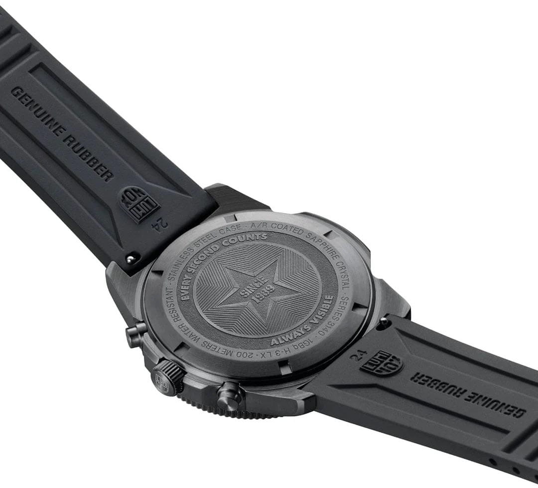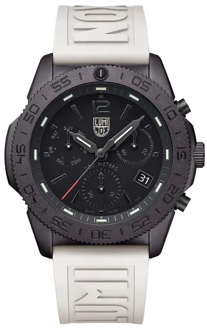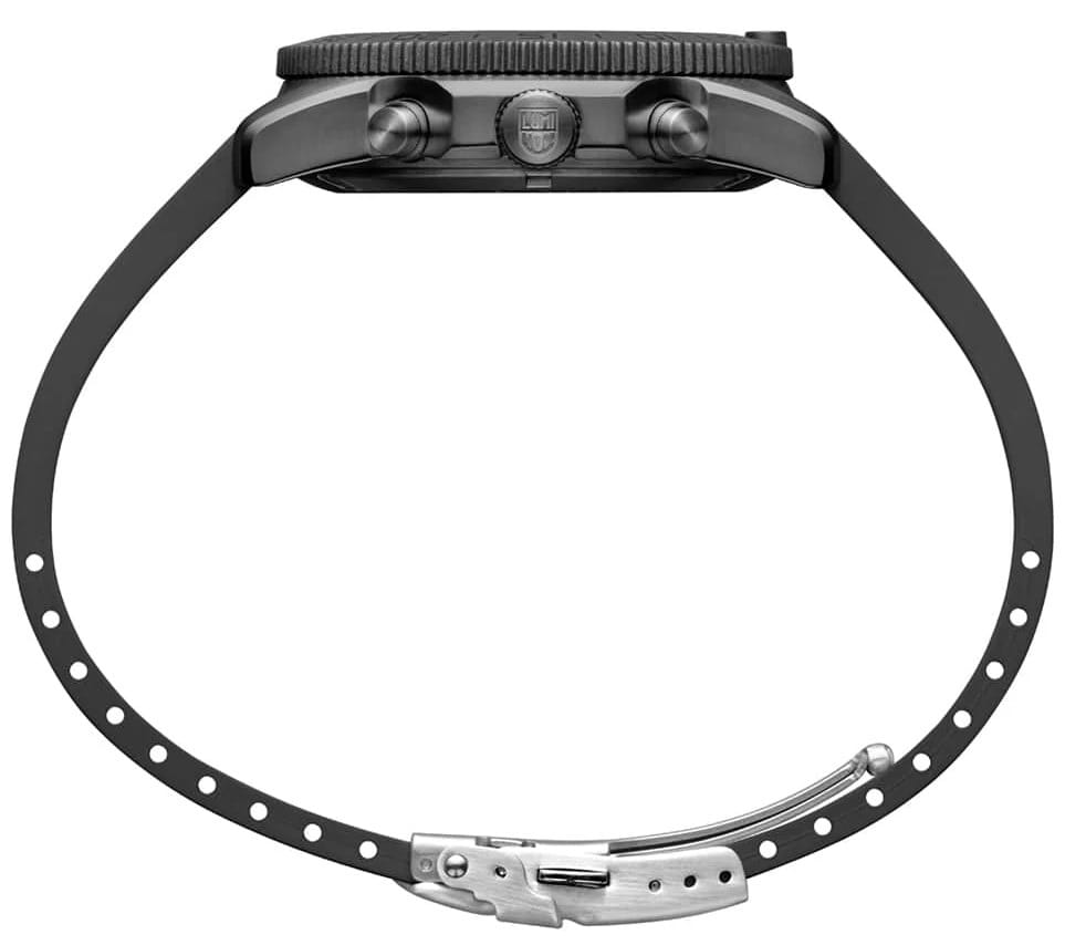 Швейцарские наручные часы Luminox Pacific Diver Chronograph XS.3141.BO.1.SET – это идеальный симбиоз стиля и высокой функциональности. Оснащенные высокоточным кварцевым механизмом, они гарантируют безупречное времяизмерение и надежность в любом случае. Часы-хронографХронографФункция позволяет измерять отрезки времени с особой точностью: часы, минуты, секунды. Верным признаком хронографа является наличие на циферблате 3 дополнительных окошек-счётчиков. обладают функцией секундомераСекундомерСекундоме́р — прибор, способный измерять интервалы времени с точностью до долей секунды., что делает их практичными в использовании. Циферблат этих часов защищен сапфировым стекломСапфировое стеклоПрочный и надёжный материал из кристалла сапфира синтетического происхождения, характеризующийся особой твёрдостью и устойчивостью к царапинам и повреждениям. с антибликовым покрытиемАнтибликовое покрытиеСлой оксида металла в 0,13-0,3 микрон, благодаря которому стекло часов не бликует и не отражает свет. Антибликовое покрытие уменьшает отражение света в 10 раз, обеспечивая отличную читаемость показателей циферблата., которое славится своей прочностью и устойчивостью к царапинам, обеспечивая кристально чистый обзор. Корпус часов выполнен из качественной стали с черным PVD-покрытиемPVDУльтратонкое покрытие наносится в технике вакуумного напыления, сочетает в себе нитрид титана особой прочности со слоем золота или оксида хрома. Несёт в себе декоративную или защитную функцию., что свидетельствует о долговечности и прочности изделия. Стрелки с LLTLLTLLT — это автономный механизм подсветки, основанный на использовании микроскопических газонаполненных элементов. Специальные герметичные капсулы из боросиликатного стекла, интегрированные в циферблат, генерируют свечение без необходимости подключения к внешним источникам энергии. Для их работы не требуется ни дополнительный свет, ни механическое воздействие (например, нажатие кнопки). Свечение возникает благодаря химическому процессу: реакция между тритием, заключенным в капсулах, и люминофорным покрытием создает стабильное автономное освещение. Технология обеспечивает энергетическую независимость и долговечность подсветки.-подсветкой, обеспечивают отличную видимость даже в условиях недостаточной освещенности, что делает их удобными для использования в любых условиях. Дополнительно часы располагают окошком даты в положении 4 часа, позволяющим быстро и удобно отслеживать текущую дату. Их внушительный класс водозащиты в 200 метров делает их идеальными для любителей водных видов спорта, таких как плавание и ныряние, не беспокоясь о повреждении механизма. Каучуковый ремешок, надёжно фиксирующий часы на запястье с помощью раскладной застёжкиРаскладная застёжкаТакой тип застёжки используется только на браслетах из металла. Она никогда не раскрывается полностью, происходит разделение на 2 и более частей. Раскладывающая застёжка снизит вероятность потери часов к минимуму., обеспечивает комфортное ношение в течение всего дня. Стильный вращающийся безельБезельВнешний ободок, закрепляющий стекло. В спортивных часах так называется поворотное кольцо с делениями на циферблате, выполняет роль таймера – замеряет отрезки времени на шкале. Неподвижный безель – элемент декора. Однонаправленно вращающийс