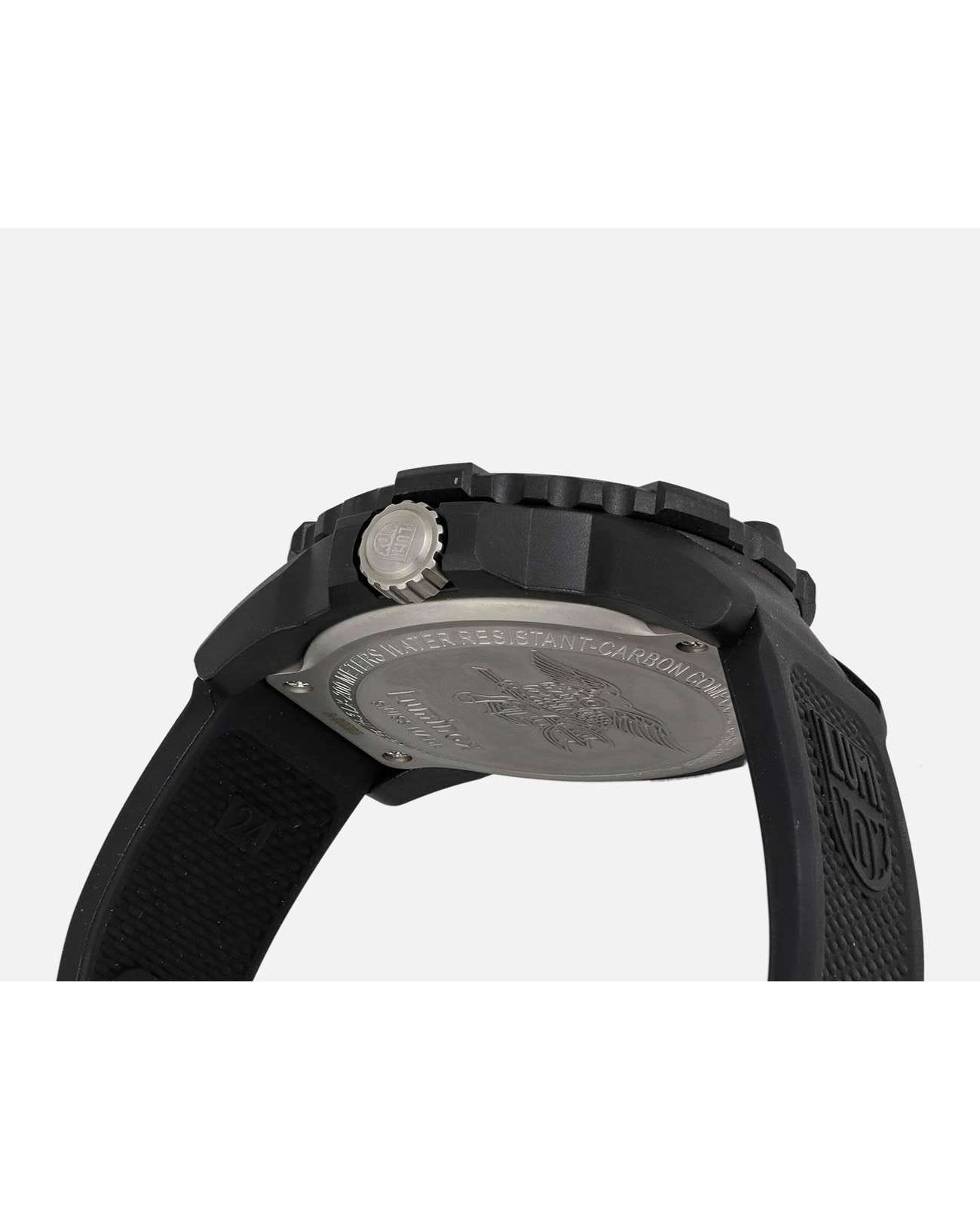 Мужские наручные часы Luminox XS.3501.F из коллекции Navy SEAL сочетают в себе спортивный дизайн и надежность швейцарского качества . Модель обладает круглым корпусом диаметром 45 мм, изготовленным из карбонаКарбонОт «carbon», «carbone» - углерод, углепластик - полимерный композиционный материал из переплетённых под определенным углом между собой нитей углеродного волокна, применяется для изготовления лёгких, но прочных деталей. В часах часто используют для украшения циферблатов и ремешков. Так же карбон используется в изготовлении корпусов. Такие корпуса обладают антикоррозионным свойством, не поддаются электромагнитному излучению, обладают повышенной прочностью и противоударностью. (CARBONOX™), что обеспечивает высокую устойчивость к внешним воздействиям при сохранении легкости . Циферблат черного цвета украшен контрастными метками и стрелками с , гарантирующим постоянную видимость времени даже в условиях низкой освещенности благодаря системе LLTLLTLLT — это автономный механизм подсветки, основанный на использовании микроскопических газонаполненных элементов. Специальные герметичные капсулы из боросиликатного стекла, интегрированные в циферблат, генерируют свечение без необходимости подключения к внешним источникам энергии. Для их работы не требуется ни дополнительный свет, ни механическое воздействие (например, нажатие кнопки). Свечение возникает благодаря химическому процессу: реакция между тритием, заключенным в капсулах, и люминофорным покрытием создает стабильное автономное освещение. Технология обеспечивает энергетическую независимость и долговечность подсветки. (микрогазовые огни) . Часы оснащены кварцевым механизмом швейцарского производства Ronda 715, обеспечивающим точность хода ±15 секунд в месяц . Защиту циферблата обеспечивает прочное минеральное стеклоМинеральное стеклоМинеральное стекло представляет собой искусственно выращенный минерал кварца. Такое стекло отличается особой устойчивостью к повреждениям и царапинам. Уступает по некоторым качествам сапфировому стеклу. с антибликовым покрытиемАнтибликовое покрытиеСлой оксида металла в 0,13-0,3 микрон, благодаря которому стекло часов не бликует и не отражает свет. Антибликовое покрытие уменьшает отражение света в 10 раз, обеспечивая отличную читаемость показателей циферблата., устойчивое к царапинам и механическим повреждениям . Водонепроницаемость модели достигает 20 атмосфер (200 метров), что делает их подходящими для плавания и активного отдыха на воде, включая дайвинг . Модель также оснащена безелемБезельВнешний ободок, закрепляющий стекло. В спортивных часах так называется поворотное кольцо с делениями на циферблате, выполняет роль таймера – замеряет отрезки времени на шкале. Неподвижный безель – элемент декора. Однонаправленно вращающийся безель на дайверских часах позволяет фиксировать моменты погружения и выныривания на поверхность. с односторонним вращением, что добавляет функциональности при использовании в водных условиях . Ремешок выполнен из черного полиуретана, что обеспечивает комфортное ношение в течение дня и удобство в уходе . Дополнительно часы имеют окно даты в положении «3 часа», что делает их практичными для повседневного использования .