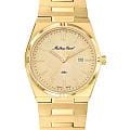 Женские кварцевые часы Mathey-Tissot Zeus D118PDI — это стильное сочетание элегантности и современного дизайна. Изящный корпус выполнен из нержавеющей стали с PVD-покрытиемPVDУльтратонкое покрытие наносится в технике вакуумного напыления, сочетает в себе нитрид титана особой прочности со слоем золота или оксида хрома. Несёт в себе декоративную или защитную функцию. золотистого цвета, диаметром 34 мм и толщиной 9 мм, что придаст образу женственности и романтизма. Изысканный циферблат с метками в виде штрихов придает модели особый блеск. Циферблат защищен сапфировым стекломСапфировое стеклоПрочный и надёжный материал из кристалла сапфира синтетического происхождения, характеризующийся особой твёрдостью и устойчивостью к царапинам и повреждениям., обеспечивающий устойчивость к царапинам. Стрелки и метки с люминесцентным покрытиемЛюминесцентное покрытиеПозволяет считывать показания времени в темноте. Производители наносят на стрелки, часовые индексы, безель или поверхность циферблата светонакопительный состав, дающий холодное свечение.. Окошко даты находится в положении 3 часа. Часы оснащены надежным кварцевым механизмом. Стальной браслет с PVD-покрытиемPVDУльтратонкое покрытие наносится в технике вакуумного напыления, сочетает в себе нитрид титана особой прочности со слоем золота или оксида хрома. Несёт в себе декоративную или защитную функцию. на застёжке-бабочке с кнопкамиЗастёжка "бабочка"Такой вид застёжки дополняется предохранителями, помогающими избежать случайного раскрытия браслета. Обладают изящным исполнением. , гарантирует комфортное и безопасное ношение. Класс водозащиты: 50 метров позволит защитить корпус от случайных брызг или капель дождя. Mathey-Tissot — отличный выбор для тех, кто ценит утонченность и качество.