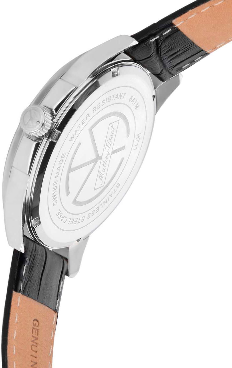Мужские кварцевые часы Mathey-Tissot Mondo H711AN — это стильное сочетание элегантности и современного дизайна. Изящный корпус выполнен из нержавеющей стали, диаметром 42 мм, что придаст образу элегантности и надежности. Изысканный циферблат с метками в виде штрихов придает модели особый блеск. Циферблат защищен минеральным стекломМинеральное стеклоМинеральное стекло представляет собой искусственно выращенный минерал кварца. Такое стекло отличается особой устойчивостью к повреждениям и царапинам. Уступает по некоторым качествам сапфировому стеклу., обеспечивает устойчивость к царапинам. Стрелки с люминесцентным покрытиемЛюминесцентное покрытиеПозволяет считывать показания времени в темноте. Производители наносят на стрелки, часовые индексы, безель или поверхность циферблата светонакопительный состав, дающий холодное свечение.. Окошко даты находится в положении 4 часа. Рифленая заводная головка. Часы оснащены надежным кварцевым механизмом. Кожаный ремешок на стандартной застёжке гарантирует комфортное и безопасное ношение. Класс водозащиты: 50 метров позволит защитить корпус от случайных брызг или капель дождя. Mathey-Tissot  — отличный выбор для тех, кто ценит утонченность и качество.