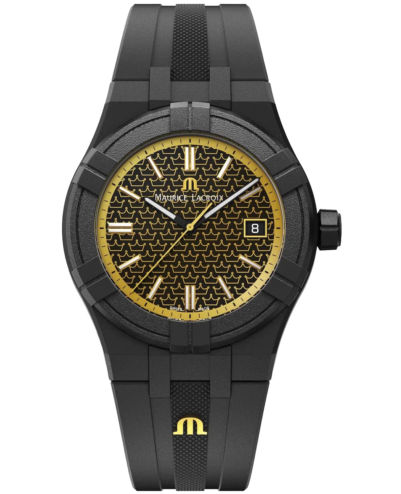 Швейцарские часы с автоподзаводом Maurice Lacroix AIKON #TIDE 40MM KOTC AI2008-00000-V00-0, кварцевый механизм с высокой точностью. Сапфировое стеклоСапфировое стеклоПрочный и надёжный материал из кристалла сапфира синтетического происхождения, характеризующийся особой твёрдостью и устойчивостью к царапинам и повреждениям. устойчивое к появлению царапин, обладающее высокой прозрачностью. Класс водозащиты: 100 метров, позволит плавать, нырять и заниматься другими водными видами спорта. Корпус часов изготовлен из пластика. Каучуковый ремень на стандартной застёжке. Окошко даты находится в положении 3 часов.Стрелки и метки с люминесцентным покрытиемЛюминесцентное покрытиеПозволяет считывать показания времени в темноте. Производители наносят на стрелки, часовые индексы, безель или поверхность циферблата светонакопительный состав, дающий холодное свечение..
