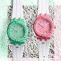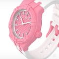 Часы AIKON #tide обладают всеми преимуществами AIKON, но кроме того, они выполнены из особого материала под названием #tideocean – переработанного океанского пластика, усиленного стекловолокном. В результате сложного технологического процесса переработки получен композитный материал, вдвое превосходящий по прочности обычный пластик. Износостойкость композита #tideocean в пять раз выше полиэтилентерефталата (ПЭТ). И еще немаловажный экологический фактор – в процессе превращения океанского пластика в материал #tideocean углеродные выбросы в атмосферу значительно снижаются, чем при обычном процессе выпуска первичного пластика. В новой модели безельБезельВнешний ободок, закрепляющий стекло. В спортивных часах так называется поворотное кольцо с делениями на циферблате, выполняет роль таймера – замеряет отрезки времени на шкале. Неподвижный безель – элемент декора. Однонаправленно вращающийся безель на дайверских часах позволяет фиксировать моменты погружения и выныривания на поверхность., корпус, задняя крышка, заводная головка, наконечник и застежка выполнены из композитного материала #tideocean. 17 пластиковых бутылок требуется для производства одних отличных часов и их специальной упаковки, также на 100% состоящей из материала #tide, появившегося в результате отходов пластика в океане. В результате такой переработки выигрывают все. Унисекс швейцарские кварцевые часы Maurice Lacroix Aikon Quartz AI2008-EEEE1-3A0-0. Сапфировое стеклоСапфировое стеклоПрочный и надёжный материал из кристалла сапфира синтетического происхождения, характеризующийся особой твёрдостью и устойчивостью к царапинам и повреждениям. устойчивое к появлению царапин, обладающее высокой прозрачностью. Розовый циферблат. Стрелки и метки с люминесцентным покрытиемЛюминесцентное покрытиеПозволяет считывать показания времени в темноте. Производители наносят на стрелки, часовые индексы, безель или поверхность циферблата светонакопительный состав, дающий холодное свечение.. Класс водозащиты: 100 метров, позволит плавать, нырять и заниматься другими водными видами спорта. Окошко даты находится в положении 3 часов. Циферблат с тематическим гильошированием "Vagues du Jura". Корпус выполнен из переработанного пластика, ранее загрязнявшего Мировой океан. Каучуковый ремешок с классической застежкой.