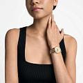 Женские американские часы Michael Kors BRYANT MK7540 имеют кварцевый механизм с высокой точностью. Корпус часов изготовлен из нержавеющей стали с PVD-покрытиемPVDУльтратонкое покрытие наносится в технике вакуумного напыления, сочетает в себе нитрид титана особой прочности со слоем золота или оксида хрома. Несёт в себе декоративную или защитную функцию. золотистого цвета, диаметром 35 мм. Циферблат защищен минеральным стекломМинеральное стеклоМинеральное стекло представляет собой искусственно выращенный минерал кварца. Такое стекло отличается особой устойчивостью к повреждениям и царапинам. Уступает по некоторым качествам сапфировому стеклу., что обеспечивает надежную защиту от царапин и повреждений. БезельБезельВнешний ободок, закрепляющий стекло. В спортивных часах так называется поворотное кольцо с делениями на циферблате, выполняет роль таймера – замеряет отрезки времени на шкале. Неподвижный безель – элемент декора. Однонаправленно вращающийся безель на дайверских часах позволяет фиксировать моменты погружения и выныривания на поверхность. украшен кристаллами. Класс водозащиты: 50 метров позволит защитить корпус от случайных брызг или капель дождя. Стальной браслет с PVD-покрытиемPVDУльтратонкое покрытие наносится в технике вакуумного напыления, сочетает в себе нитрид титана особой прочности со слоем золота или оксида хрома. Несёт в себе декоративную или защитную функцию. на раскладной застёжкеРаскладная застёжкаТакой тип застёжки используется только на браслетах из металла. Она никогда не раскрывается полностью, происходит разделение на 2 и более частей. Раскладывающая застёжка снизит вероятность потери часов к минимуму. обеспечивает надежную фиксацию на запястье и легкость в надевании и снятии. Эти часы станут отличным дополнением к любому наряду, подчеркивая индивидуальность и стиль их обладательницы. Идеальный аксессуар, который придаст женскому образу завершенность и особый шарм.