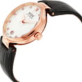 Стильная модель для прекрасной половины. Циферблат украшен натуральным перламутром, бриллианты вместо меток играют на свету. Механический механизм (автоматический калибр) с высокой точностью. Сапфировое стеклоСапфировое стеклоПрочный и надёжный материал из кристалла сапфира синтетического происхождения, характеризующийся особой твёрдостью и устойчивостью к царапинам и повреждениям. устойчивое к появлению царапин, обладающее высокой прозрачностью. Класс водозащиты: 50 метров, позволит защитить корпус от случайных брызг или капель дождя. Корпус часов изготовлен из нержавеющей стали с PVD-покрытиемPVDУльтратонкое покрытие наносится в технике вакуумного напыления, сочетает в себе нитрид титана особой прочности со слоем золота или оксида хрома. Несёт в себе декоративную или защитную функцию.. Кожаный ремешок с застёжкой «бабочка» с кнопкамиЗастёжка "бабочка"Такой вид застёжки дополняется предохранителями, помогающими избежать случайного раскрытия браслета. Обладают изящным исполнением. .