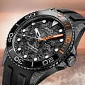 Мужские швейцарские механические часы с сапфировым стеклом Mido Ocean Star 200C Carbon Limited Edition M042.431.77.081.00, механический механизм (автоматический калибр) с высокой точностью. Сапфировое стеклоСапфировое стеклоПрочный и надёжный материал из кристалла сапфира синтетического происхождения, характеризующийся особой твёрдостью и устойчивостью к царапинам и повреждениям. устойчивое к появлению царапин, обладающее высокой прозрачностью. Класс водозащиты: 200 метров, позволит плавать, нырять и заниматься другими водными видами спорта. Корпус часов изготовлен из карбона. Mido использует керамику - один из самых выдающихся материалов в часовом производстве - для вращающегося в одном направлении безеляБезельВнешний ободок, закрепляющий стекло. В спортивных часах так называется поворотное кольцо с делениями на циферблате, выполняет роль таймера – замеряет отрезки времени на шкале. Неподвижный безель – элемент декора. Однонаправленно вращающийся безель на дайверских часах позволяет фиксировать моменты погружения и выныривания на поверхность. модели Ocean Star 200C. Циферблат украшен волнистой текстурой и имеет накладные индексы покрытые белым люминесцентным покрытиемЛюминесцентное покрытиеПозволяет считывать показания времени в темноте. Производители наносят на стрелки, часовые индексы, безель или поверхность циферблата светонакопительный состав, дающий холодное свечение. Super-Luminova®. Ограниченная серия из 888 часов.