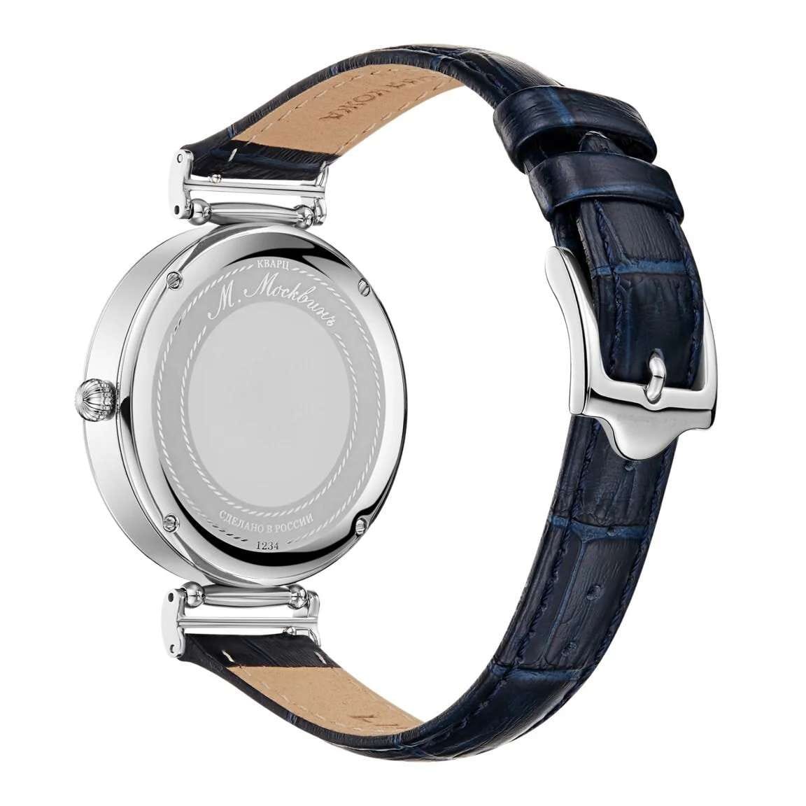 Женские кварцевые часы Михаил Москвин 1234L-1 из коллекции Elegance - воплощение утончённой классики с современными деталями. Круглый корпус диаметром 38 мм из полированной нержавеющей стали, белый циферблат с многослойным керамическим покрытием, арабские цифры и малый секундный циферблат. Стекло сапфировоеСапфировое стеклоПрочный и надёжный материал из кристалла сапфира синтетического происхождения, характеризующийся особой твёрдостью и устойчивостью к царапинам и повреждениям., устойчивое к царапинам и сохраняющее кристальную чёткость. Рифлёная заводная головка и задняя крышка на четырёх винтах с декоративной гравировкой подчёркивают внимание к деталям и качество сборки. Водонепроницаемость 50 м (5 ATM) подходит для повседневного ношения, включая дождь и умывание. Кожаный ремешок шириной 16 мм на стандартной застёжке. Идеальный выбор для женщины, ценящей элегантность, швейцарскую точность, роскошное исполнение и лаконичный белый циферблат в универсальном формате.