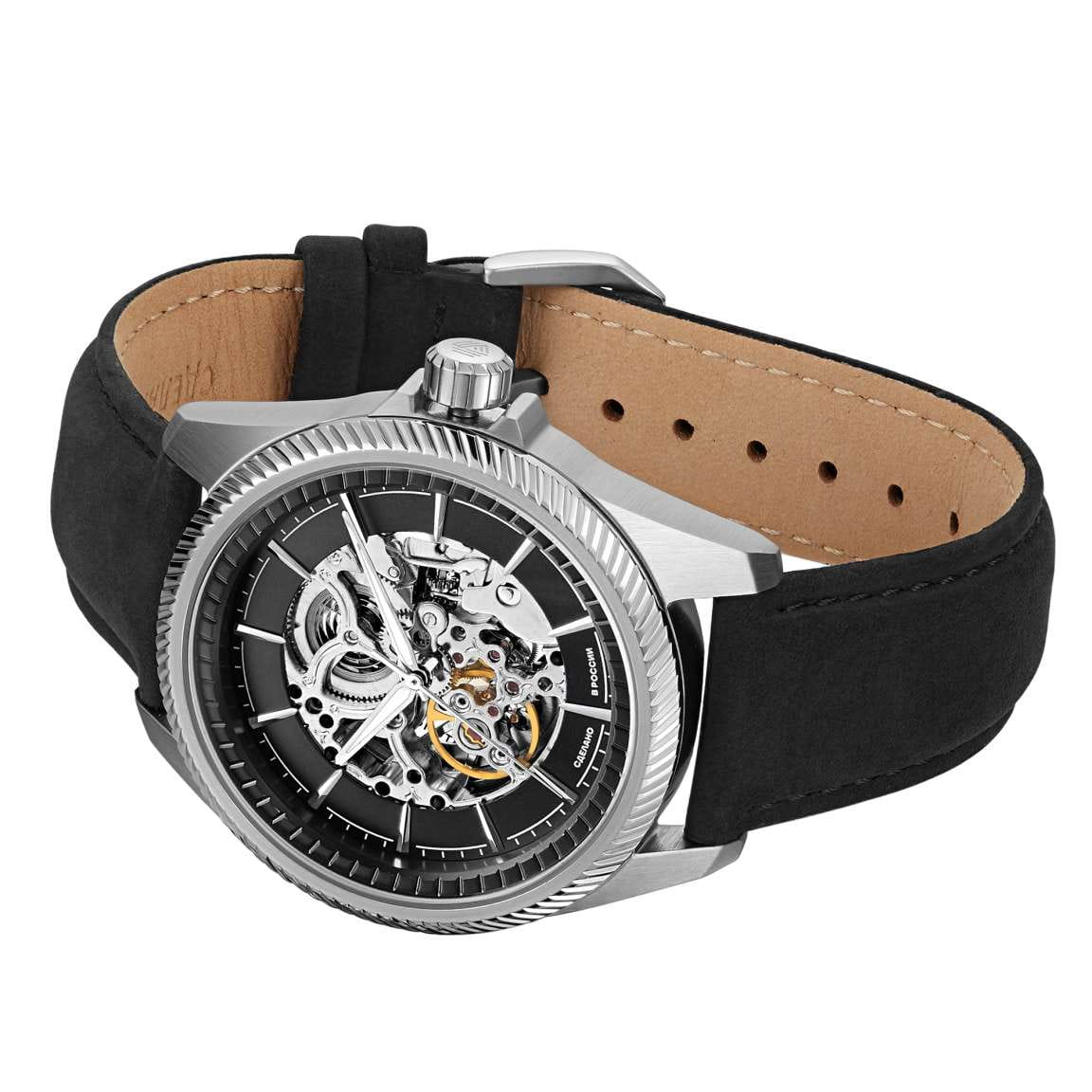 Михаил Москвин Elegance 3052L-1 — мужские механические часы с автоподзаводом, сочетающие в себе стиль и функциональность. Корпус выполнен из нержавеющей стали, гармонично дополнен кожаным ремешком со стандартной застежкой. Скелетонизированный циферблат дополнен акцентными стрелками с люминесцентным покрытиемЛюминесцентное покрытиеПозволяет считывать показания времени в темноте. Производители наносят на стрелки, часовые индексы, безель или поверхность циферблата светонакопительный состав, дающий холодное свечение. для отличной читаемости в темноте, что делает модель более практичной. Стекло минеральное закалённоеМинеральное стеклоМинеральное стекло представляет собой искусственно выращенный минерал кварца. Такое стекло отличается особой устойчивостью к повреждениям и царапинам. Уступает по некоторым качествам сапфировому стеклу., устойчивое к царапинам. Водозащита до 50 метров позволит защитить корпус от случайных брызг или капель дождя. Благодаря своей универсальной эстетике эти часы уместны и в деловой среде, и в повседневном образе. Идеальный выбор для тех, кто ценит элегантный дизайн и качество.