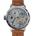 Мужские механические часы с ручным подзаводом — это аксессуар от легендарного бренда «МОЛНИЯ», созданный на Челябинском часовом заводе. Корпус диаметром 41 мм и толщиной 12 мм выполнен из нержавеющей стали 316L с зеркальной полировкой. БезельБезельВнешний ободок, закрепляющий стекло. В спортивных часах так называется поворотное кольцо с делениями на циферблате, выполняет роль таймера – замеряет отрезки времени на шкале. Неподвижный безель – элемент декора. Однонаправленно вращающийся безель на дайверских часах позволяет фиксировать моменты погружения и выныривания на поверхность. также выполнен из стали с зеркальной отделкой. Циферблат синего цвета оформлен римскими цифрами и стальными индексами. Малая секундная стрелка вынесена на позицию 6 часов. Циферблат защищён сапфировым стекломСапфировое стеклоПрочный и надёжный материал из кристалла сапфира синтетического происхождения, характеризующийся особой твёрдостью и устойчивостью к царапинам и повреждениям. толщиной 2,5 мм. Механизм — мануфактурный калибр 3603, собранный вручную, с запасом хода до 40 часов. Прозрачная задняя крышка позволяет наблюдать за работой механизма. Часы оснащены светло-коричневым кожаным ремешком шириной 20 мм с раскладной застёжкойРаскладная застёжкаТакой тип застёжки используется только на браслетах из металла. Она никогда не раскрывается полностью, происходит разделение на 2 и более частей. Раскладывающая застёжка снизит вероятность потери часов к минимуму. и системой быстрой замены. Водонепроницаемость 100 м позволяет использовать часы для плавания и повседневного ношения. Идеальный выбор для тех, кто ценит российское качество и традиции.