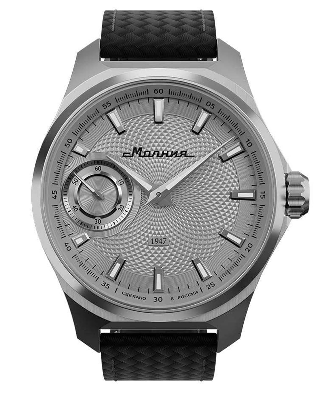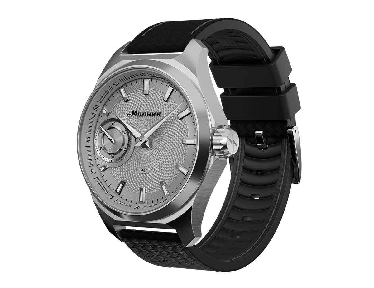Мужские механические часы с ручным подзаводом — это аксессуар от легендарного бренда «МОЛНИЯ», созданный на Челябинском часовом заводе. Корпус диаметром 42 мм выполнен из нержавеющей стали 316L с зеркальной полировкой. БезельБезельВнешний ободок, закрепляющий стекло. В спортивных часах так называется поворотное кольцо с делениями на циферблате, выполняет роль таймера – замеряет отрезки времени на шкале. Неподвижный безель – элемент декора. Однонаправленно вращающийся безель на дайверских часах позволяет фиксировать моменты погружения и выныривания на поверхность. также выполнен из стали с зеркальной отделкой. Циферблат серебристого цвета оформлен индексами и стрелками. Малая секундная стрелка вынесена на позицию 9 часов. Стрелки и метки с люминесцентным покрытиемЛюминесцентное покрытиеПозволяет считывать показания времени в темноте. Производители наносят на стрелки, часовые индексы, безель или поверхность циферблата светонакопительный состав, дающий холодное свечение. Super-LumiNova, обеспечивающим хорошую читаемость в темноте. Циферблат защищён сапфировым стекломСапфировое стеклоПрочный и надёжный материал из кристалла сапфира синтетического происхождения, характеризующийся особой твёрдостью и устойчивостью к царапинам и повреждениям. с антибликовым покрытиемАнтибликовое покрытиеСлой оксида металла в 0,13-0,3 микрон, благодаря которому стекло часов не бликует и не отражает свет. Антибликовое покрытие уменьшает отражение света в 10 раз, обеспечивая отличную читаемость показателей циферблата.. Механизм — мануфактурный калибр 3603, собранный вручную, с запасом хода до 40 часов. Прозрачная задняя крышка позволяет наблюдать за работой механизма. Часы оснащены силиконовым ремешком чёрного цвета с классической пряжкой, а также системой быстрой замены. Водонепроницаемость 100 м позволяет использовать часы для плавания и повседневного ношения. Идеальный выбор для тех, кто ценит российское качество и традиции.