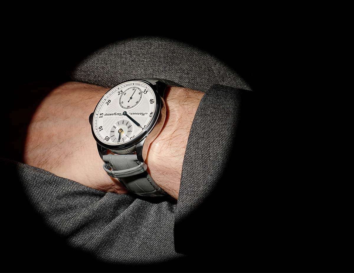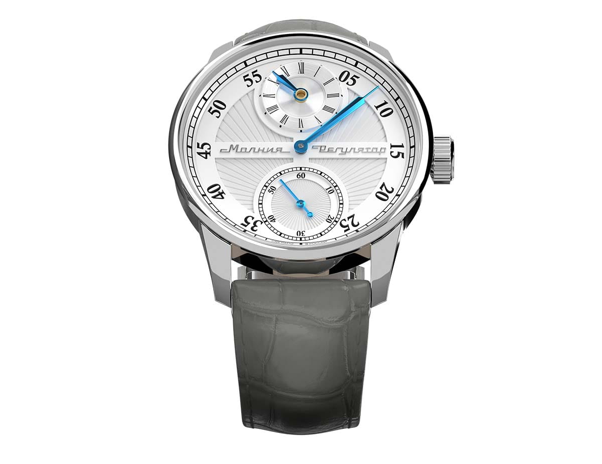 Мужские механические часы с ручным подзаводом — это аксессуар от легендарного бренда «МОЛНИЯ», созданный на Челябинском часовом заводе. Корпус диаметром 42 мм выполнен из нержавеющей стали. Циферблат оформлен индексами и стрелками. Малая секундная стрелка вынесена на отдельный субциферблат. Циферблат защищён сапфировым стекломСапфировое стеклоПрочный и надёжный материал из кристалла сапфира синтетического происхождения, характеризующийся особой твёрдостью и устойчивостью к царапинам и повреждениям.. Механизм — мануфактурный калибр 3603RS, полностью собранный вручную, с декорированными деталями, которые видны через прозрачную заднюю крышку. Часы оснащены кожаным ремешком серого цвета с раскладной застёжкойРаскладная застёжкаТакой тип застёжки используется только на браслетах из металла. Она никогда не раскрывается полностью, происходит разделение на 2 и более частей. Раскладывающая застёжка снизит вероятность потери часов к минимуму.. Водонепроницаемость 100 м позволяет использовать часы для плавания и повседневного ношения. Идеальный выбор для тех, кто ценит российское качество и традиции.
