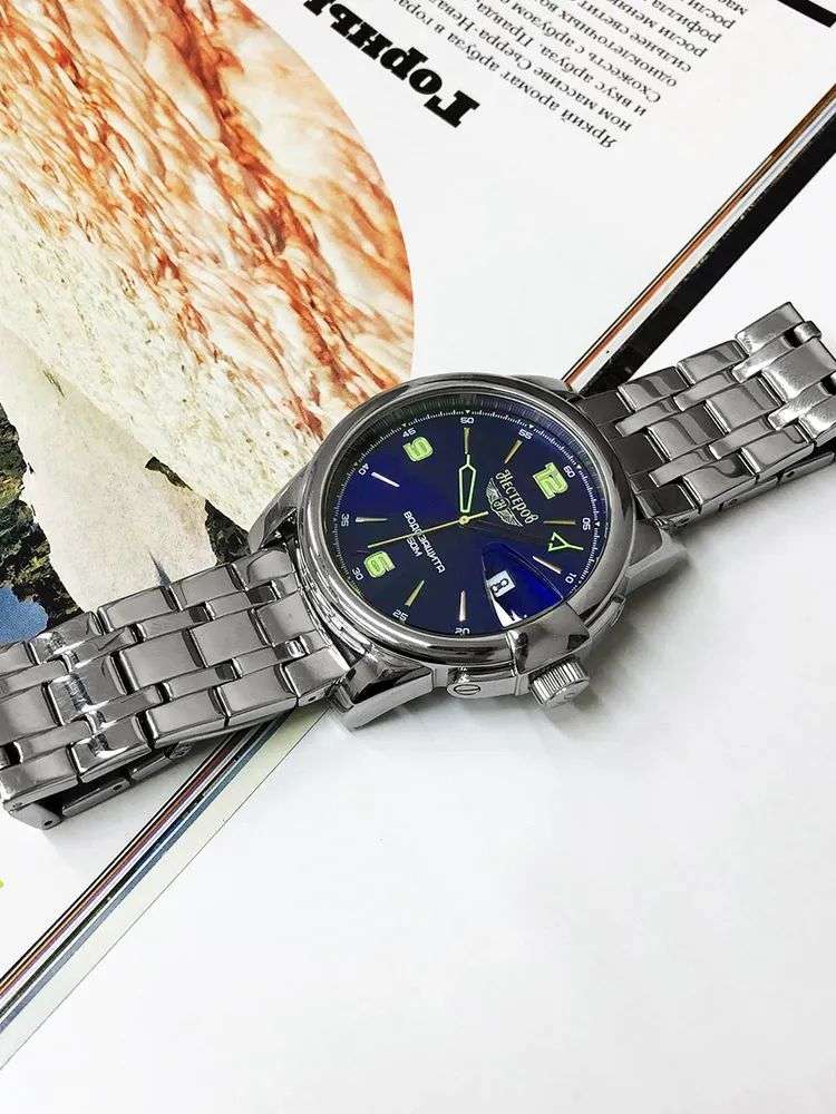 Часы оснащены японским кварцевым механизмом, обеспечивающим точный ход. Циферблат защищён минеральным стекломМинеральное стеклоМинеральное стекло представляет собой искусственно выращенный минерал кварца. Такое стекло отличается особой устойчивостью к повреждениям и царапинам. Уступает по некоторым качествам сапфировому стеклу., устойчивым к царапинам. Установлена классическая застёжка-пряжка, обеспечивая надёжную фиксацию на запястье. Модель обладает водонепроницаемостью до 50 метров, что делает её подходящей для повседневного использования.