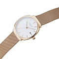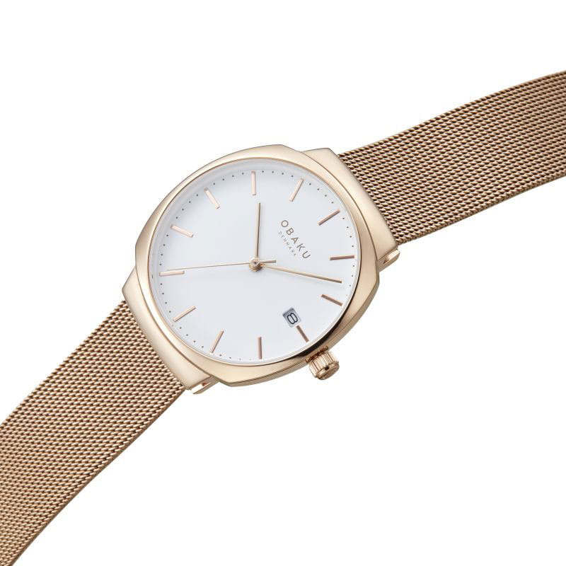 Женские наручные кварцевые часы с минеральным стекломМинеральное стеклоМинеральное стекло представляет собой искусственно выращенный минерал кварца. Такое стекло отличается особой устойчивостью к повреждениям и царапинам. Уступает по некоторым качествам сапфировому стеклу. Obaku Mesh V273LDVWMV, кварцевый механизм с высокой точностью. Центральные часовая, минутная и секундная стрелки. Апертура даты в позиции 3 часов. Класс водозащиты: 30 метров, позволит защитить корпус от случайных брызг или капель дождя. Корпус часов изготовлен из стали с IP-покрытиемIP-покрытиеМетод ионного напыления. Демонстрирует повышенную устойчивость к истиранию, окислению и химическим веществам. Под воздействием высокого давления и температуры около 1500°C молекулы металла надёжно соединяются с частицами корпуса часов.. Браслет выполнен в технике миланского плетения. Раскладная застёжкаРаскладная застёжкаТакой тип застёжки используется только на браслетах из металла. Она никогда не раскрывается полностью, происходит разделение на 2 и более частей. Раскладывающая застёжка снизит вероятность потери часов к минимуму..