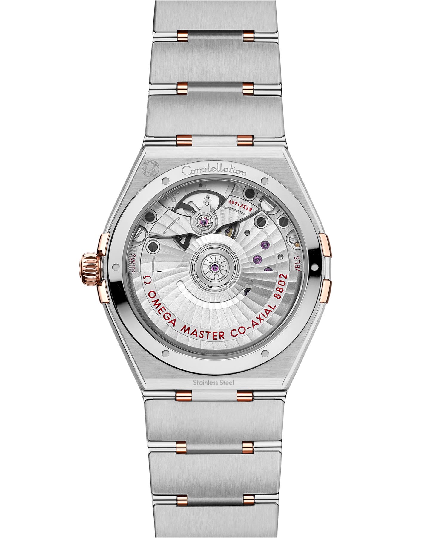 Sedna™, а малый секундный циферблат и центральная минутная дорожка обведены кольцами. Часы представлены на легендарном браслете-монограннике с застежкой-бабочкой и удобной регулировкой хода. Они оснащены коаксиальным хронометром OMEGA Master Chronometer Calibre 8802, который виден через куполообразное сапфировое стеклоСапфировое стеклоПрочный и надёжный материал из кристалла сапфира синтетического происхождения, характеризующийся особой твёрдостью и устойчивостью к царапинам и повреждениям., устойчивое к царапинам.