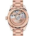 Часы Omega Seamaster Aqua Terra выполнены в симметричном корпусе из полированного 18K Sedna™ золота с завинчивающейся задней крышкой, украшенной волновым узором. Безель инкрустирован бриллиантами, что добавляет модели роскошный акцент. Циферблат нежно-розового цвета дополнен 12 часовыми метками из рубина и стрелками из 18K Sedna™ золота, оснащёнными люминесцентным покрытиемЛюминесцентное покрытиеПозволяет считывать показания времени в темноте. Производители наносят на стрелки, часовые индексы, безель или поверхность циферблата светонакопительный состав, дающий холодное свечение. Super-LumiNova для лучшей читаемости в темноте. Калибр Omega 8807 сертифицирован как Master Chronometer — гарантия высочайшей точности и устойчивости к магнитным полям. Запас хода составляет 55 часов. Защиту циферблата обеспечивает сапфировое стеклоСапфировое стеклоПрочный и надёжный материал из кристалла сапфира синтетического происхождения, характеризующийся особой твёрдостью и устойчивостью к царапинам и повреждениям. с антибликовым покрытиемАнтибликовое покрытиеСлой оксида металла в 0,13-0,3 микрон, благодаря которому стекло часов не бликует и не отражает свет. Антибликовое покрытие уменьшает отражение света в 10 раз, обеспечивая отличную читаемость показателей циферблата. с обеих сторон. Водозащита позволяет использовать часы в воде без риска повреждения. Часы установлены на браслет из 18K Sedna™ золота с закруглёнными звеньями и раскладной застёжкойРаскладная застёжкаТакой тип застёжки используется только на браслетах из металла. Она никогда не раскрывается полностью, происходит разделение на 2 и более частей. Раскладывающая застёжка снизит вероятность потери часов к минимуму.. Вес модели — около 160 грамм. Это сочетание премиального качества, технологичности и классического дизайна.