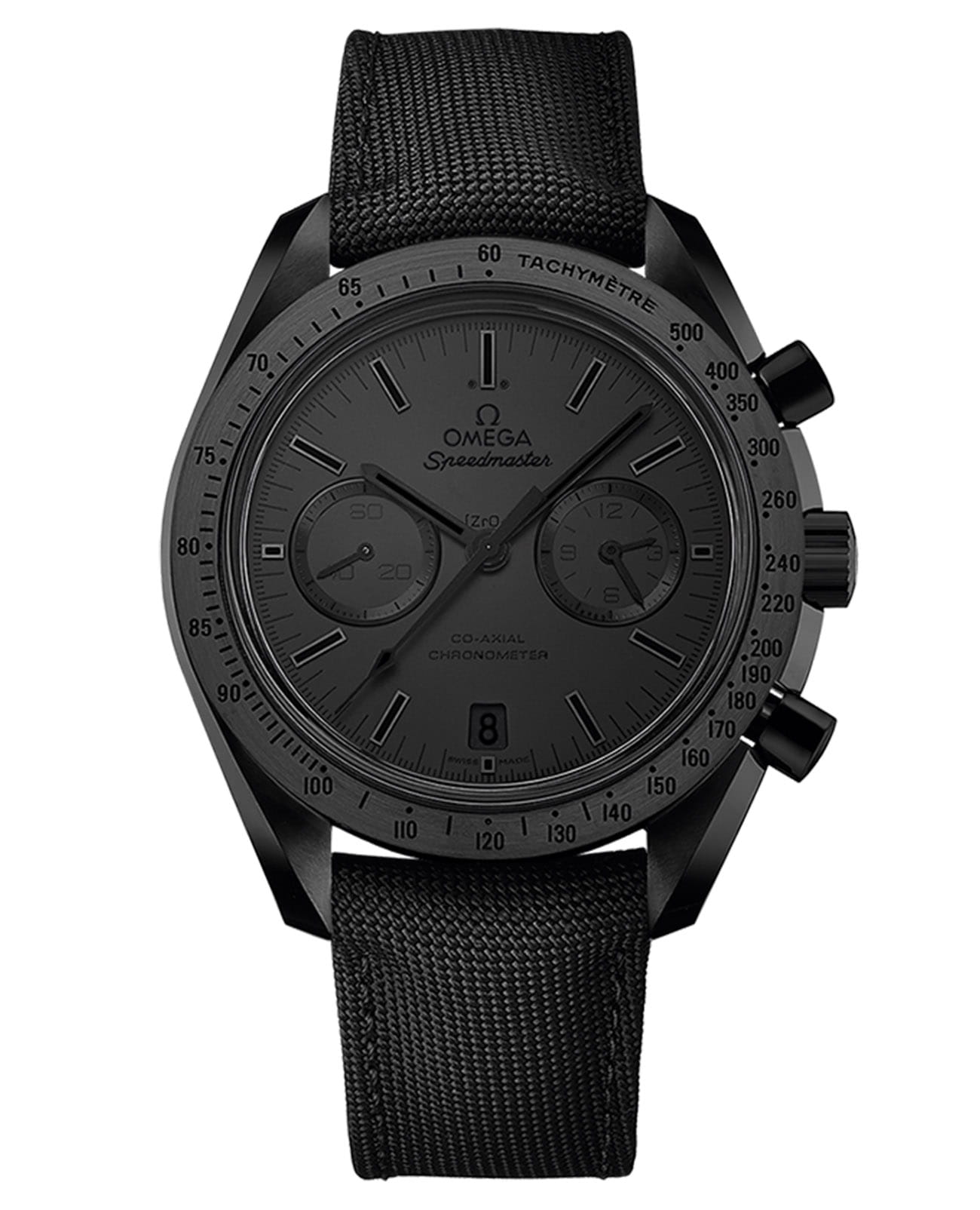 Продолжая космическую легенду, OMEGA представляет радикальную интерпретацию Speedmaster Dark Side of the Moon "Black Black" — хронометр, где тьма обретает новые измерения. 44,25-мм корпус из высокотехнологичной керамики демонстрирует игру полированных и сатинированных поверхностей, создавая гипнотический эффект глубины. Матовый черный керамический циферблат с чернеными стрелками и индексами, покрытыми черным Super-LumiNovaЛюминесцентное покрытиеПозволяет считывать показания времени в темноте. Производители наносят на стрелки, часовые индексы, безель или поверхность циферблата светонакопительный состав, дающий холодное свечение., излучает призрачное свечение. БезельБезельВнешний ободок, закрепляющий стекло. В спортивных часах так называется поворотное кольцо с делениями на циферблате, выполняет роль таймера – замеряет отрезки времени на шкале. Неподвижный безель – элемент декора. Однонаправленно вращающийся безель на дайверских часах позволяет фиксировать моменты погружения и выныривания на поверхность. из черной керамики с тахиметрическойТахиметрРазмеченная шкала, располагается на ободке или безеле часов. Тахиметр позволяет рассчитать скорость на определённом участке пути, расстояние измеряется в километрах или милях. шкалой, выполненной черным лаком, и матовые вспомогательные циферблаты завершают монохромную эстетику. Часы дополнены нейлоновым ремешком с особой пропиткой и керамической застежкой, образуя абсолютно целостный образ. В основе — калибр 9300, коаксиальный механизм OMEGA, продолжающий славную традицию лунных хронометров.