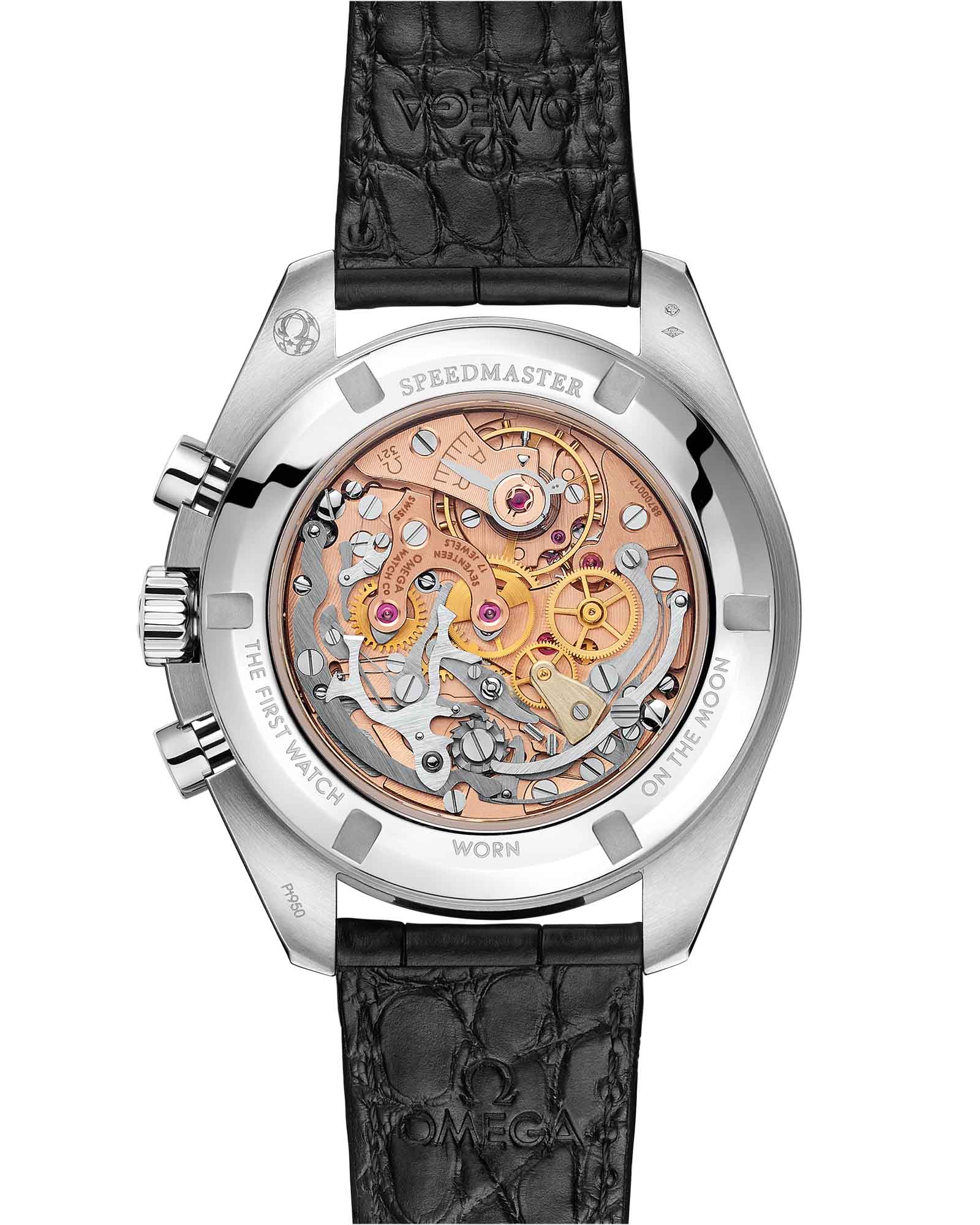 OMEGA Speedmaster — эталон часового искусства, единственные часы, побывавшие во всех шести лунных миссиях. Их платиновая версия с 18-каратным золотом18-каратное золотоОбозначение по каратной системе пробирования, оно показывает, сколько драгоценного металла содержится в изделии. 18 карат - в составе 75% чистого золота, соответствует 750 пробе.