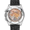 в сплаве корпуса (Pt950Au20) и черным кожаным ремешком оснащена легендарным механизмом 321, бережно модернизированным для современных стандартов. Через сапфировое стеклоСапфировое стеклоПрочный и надёжный материал из кристалла сапфира синтетического происхождения, характеризующийся особой твёрдостью и устойчивостью к царапинам и повреждениям. задней крышки открывается вид на этот механический шедевр. БезельБезельВнешний ободок, закрепляющий стекло. В спортивных часах так называется поворотное кольцо с делениями на циферблате, выполняет роль таймера – замеряет отрезки времени на шкале. Неподвижный безель – элемент декора. Однонаправленно вращающийся безель на дайверских часах позволяет фиксировать моменты погружения и выныривания на поверхность. из черной керамики с тахиметрической шкалойТахиметрРазмеченная шкала, располагается на ободке или безеле часов. Тахиметр позволяет рассчитать скорость на определённом участке пути, расстояние измеряется в километрах или милях., покрытой белой эмалью, дополняет 42-миллиметровый корпус. На черном ониксовом циферблате контрастируют индексы и стрелки из 18-каратного белого золота18-каратное золотоОбозначение по каратной системе пробирования, оно показывает, сколько драгоценного металла содержится в изделии. 18 карат - в составе 75% чистого золота, соответствует 750 пробе.