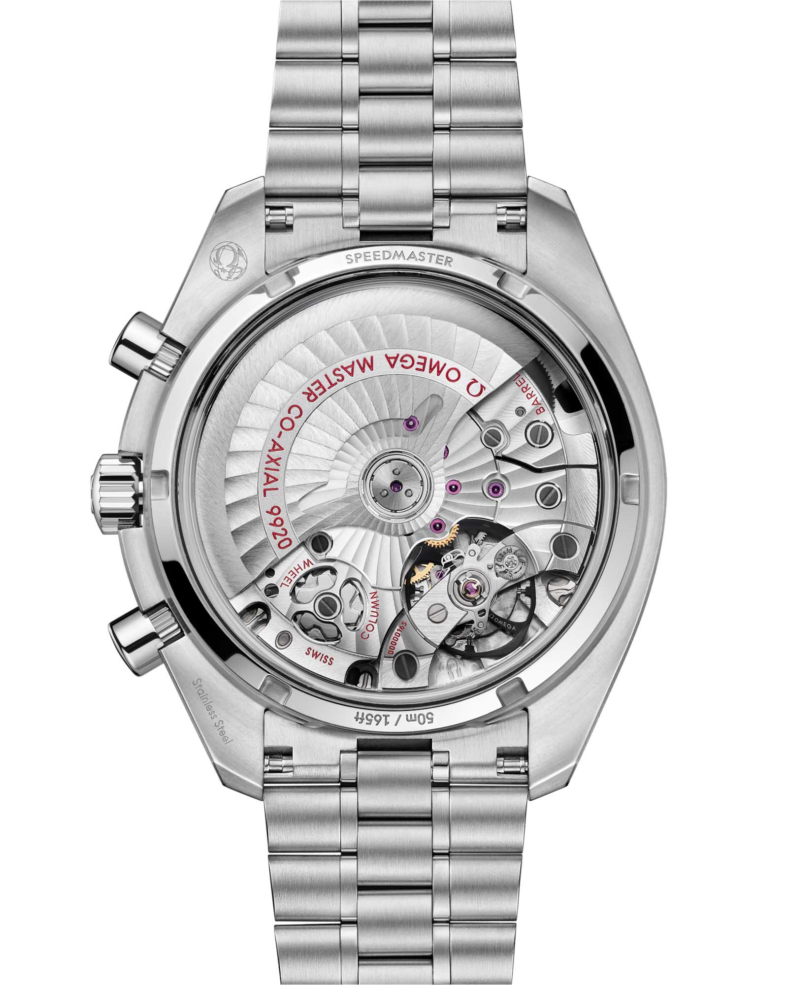 OMEGA Speedmaster 2023 года в 44,25-мм корпусе из нержавеющей стали представляет революционную инновацию - первые в мире часы с системой Spirate™. Многослойный черный циферблат с сотообразным узором и гоночной минутной шкалой обрамлен керамическим безелемБезельВнешний ободок, закрепляющий стекло. В спортивных часах так называется поворотное кольцо с делениями на циферблате, выполняет роль таймера – замеряет отрезки времени на шкале. Неподвижный безель – элемент декора. Однонаправленно вращающийся безель на дайверских часах позволяет фиксировать моменты погружения и выныривания на поверхность., украшенным тахиметрической шкалойТахиметрРазмеченная шкала, располагается на ободке или безеле часов. Тахиметр позволяет рассчитать скорость на определённом участке пути, расстояние измеряется в километрах или милях. из желтой эмали Grand Feu. Желтый градиент стрелки хронографаХронографФункция позволяет измерять отрезки времени с особой точностью: часы, минуты, секунды. Верным признаком хронографа является наличие на циферблате 3 дополнительных окошек-счётчиков. эффектно контрастирует с черно-желтой полосатой малой секундной стрелкой на 9 часах, в то время как на 3 часах расположен 60-минутный и 12-часовой счетчики, а на 6 часах - памятный индикатор даты с цифрой "10" в фирменном стиле. Полированные черные индексы-стрелки с Super-LumiNovaЛюминесцентное покрытиеПозволяет считывать показания времени в темноте. Производители наносят на стрелки, часовые индексы, безель или поверхность циферблата светонакопительный состав, дающий холодное свечение. желтого свечения и соответствующие надписи на циферблате завершают динамичный образ. В основе - революционный калибр OMEGA Co-Axial Master Chronometer 9920 с системой Spirate™, сертифицированный METAS. Комплектация включает фирменный черный футляр с сотообразным узором и желтой строчкой, а также ремень NATOРемешок NATOРемешок NATO — это прочный, универсальный и сменный часовой ремешок, изначально созданный для военных. Он изготовлен из нейлона или другого прочного материала и имеет уникальную конструкцию, которая позволяет часам оставаться на запястье даже в случае поломки одной из прикрепляющих точек. из переработанного нейлона в черно-желтой гамме.