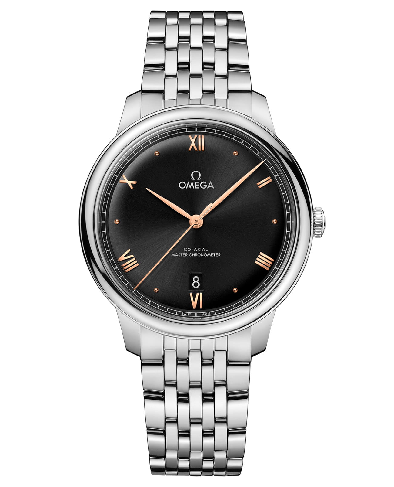 Третье воплощение легендарной коллекции OMEGA De Ville Prestige, бережно хранящей традиции с 1994 года, представляет собой гармонию вечной классики и современного мастерства. Эти часы, ставшие символом безупречного вкуса, предлагают богатую палитру дизайнерских решений с изысканными узорами и благородными оттенками, созданными для самых взыскательных ценителей. 40-миллиметровый корпус из нержавеющей стали обрамляет выпуклый циферблат с PVD-покрытиемPVDУльтратонкое покрытие наносится в технике вакуумного напыления, сочетает в себе нитрид титана особой прочности со слоем золота или оксида хрома. Несёт в себе декоративную или защитную функцию. глубокого черного цвета, украшенный изысканным радиальным сатинированием, где стрелки с PVD-покрытиемPVDУльтратонкое покрытие наносится в технике вакуумного напыления, сочетает в себе нитрид титана особой прочности со слоем золота или оксида хрома. Несёт в себе декоративную или защитную функцию. в благородных тонах золота Sedna™ гармонично сочетаются с чередующимися римскими цифрами и индексами-кабошонами. Лаконичный дизайн дополняют функциональные элементы: изящное окошко даты в положении «6 часов» и характерная минутная шкала в стиле «железная дорога» по краю циферблата. Обладая престижным сертификатом Master Chronometer, модель представлена с элегантным браслетом из нержавеющей стали, а в ее сердце бьется калибр OMEGA Master Co-Axial 8800, демонстрируемый через прочное сапфировое стеклоСапфировое стеклоПрочный и надёжный материал из кристалла сапфира синтетического происхождения, характеризующийся особой твёрдостью и устойчивостью к царапинам и повреждениям. задней крышки - истинное удовольствие для ценителей высокого часового искусства.