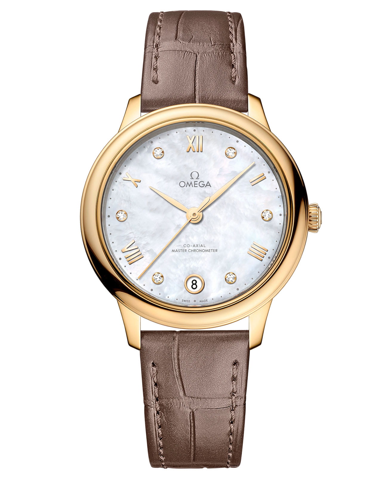 Третье перерождение культовой коллекции OMEGA De Ville Prestige, бережно хранящей традиции часового искусства с 1994 года, являет собой идеальный синтез классики и современности. Эти хронографы, ставшие эталоном утонченного стиля, предлагают богатую палитру дизайнерских решений для самых взыскательных ценителей. 34-миллиметровый корпус из 18-каратного желтого золота18-каратное золотоОбозначение по каратной системе пробирования, оно показывает, сколько драгоценного металла содержится в изделии. 18 карат - в составе 75% чистого золота, соответствует 750 пробе.