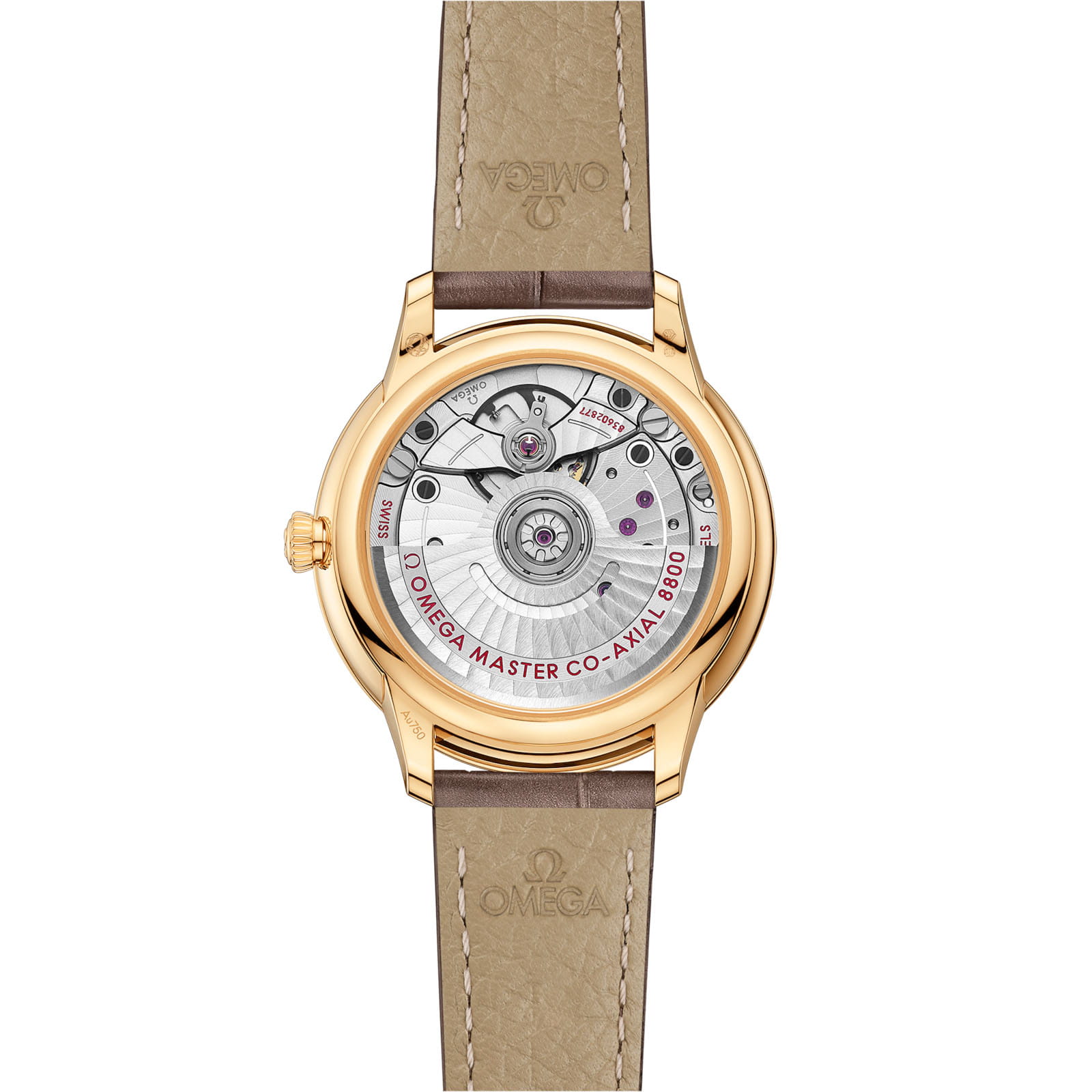 танцуют между чередующимися римскими цифрами и бриллиантовыми метками. Лаконичный дизайн дополнен практичной элегантностью: окошком даты на позиции «6 часов» и утонченной минутной шкалой в виде россыпи точек по периметру. Обладая престижным сертификатом Master Chronometer, модель представлена с переливающимся кожаным ремешком серо-коричневых тонов, а ее механическое сердце - калибр OMEGA Master Co-Axial 8800 - демонстрируется через прочное сапфировое стеклоСапфировое стеклоПрочный и надёжный материал из кристалла сапфира синтетического происхождения, характеризующийся особой твёрдостью и устойчивостью к царапинам и повреждениям. задней крышки, открывая взору истинную поэзию часового мастерства.