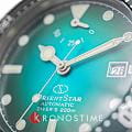 Модель Orient Star RE-AU0602E из серии Sports Diver — это профессиональные механические часы для подводных приключений и повседневного стиля с акцентом на надёжность и японскую эстетику. Корпус диаметром 41 мм выполнен из нержавеющей стали SUS316L, что гарантирует устойчивость к коррозии и высокую прочность. Односторонний безель из алюминия с насечками упрощает управление под водой, а заводная головка и задняя крышка завинчиваются для дополнительной защиты. Градиентный зелёный циферблат вдохновлён природными оттенками пещеры Рюсэндо. Часовые метки и стрелки покрыты люминесцентным покрытиемЛюминесцентное покрытиеПозволяет считывать показания времени в темноте. Производители наносят на стрелки, часовые индексы, безель или поверхность циферблата светонакопительный состав, дающий холодное свечение., обеспечивая отличную читаемость даже в полной темноте. На циферблате размещён индикатор запаса хода и окно даты. Циферблат защищён двойным выпуклым сапфировым стекломСапфировое стеклоПрочный и надёжный материал из кристалла сапфира синтетического происхождения, характеризующийся особой твёрдостью и устойчивостью к царапинам и повреждениям. с антибликовым покрытиемАнтибликовое покрытиеСлой оксида металла в 0,13-0,3 микрон, благодаря которому стекло часов не бликует и не отражает свет. Антибликовое покрытие уменьшает отражение света в 10 раз, обеспечивая отличную читаемость показателей циферблата.. Модель оснащена автоматическим калибром F6N47 с функцией ручного подзавода, остановкой секундной стрелки и запасом хода до 50 часов. Водонепроницаемость составляет 200 метров и соответствует стандарту ISO 6425, что делает часы полноценным дайвером. Браслет выполнен из стали с раскладной застёжкойРаскладная застёжкаТакой тип застёжки используется только на браслетах из металла. Она никогда не раскрывается полностью, происходит разделение на 2 и более частей. Раскладывающая застёжка снизит вероятность потери часов к минимуму. и системой удлинения для дайверского костюма. В комплекте предусмотрен дополнительный силиконовый ремешок. Orient Star RE-AU0602E — это надёжные, технически выверенные и эстетически продуманные часы, которые одинаково уверенно смотрятся под водой и в городских условиях.