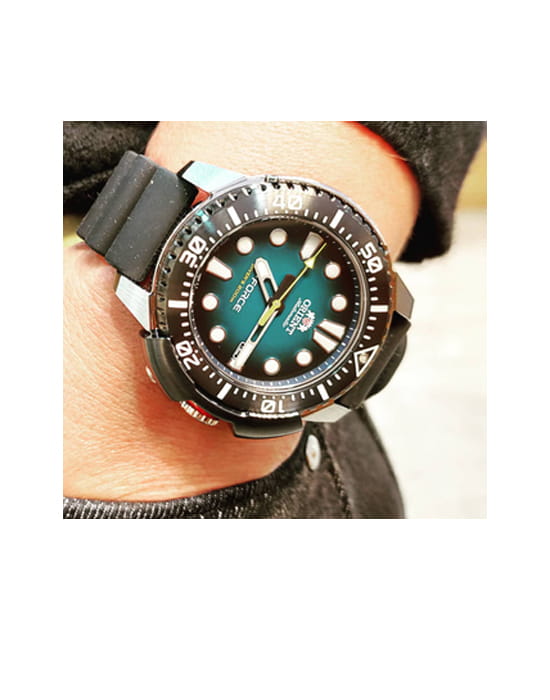 Мужские механические часы с автоподзаводом. Калибр механизма F6722 на 22 камнях. Частота 21 600 полуколебаний в час. Запас хода 40 часов. Центральные часовая, минутная и секундная стрелки. Апертура даты в позиции 3 часов. Синий циферблат. Люминесцентные стрелки и часовые индексы. Круглый корпус выполнен из нержавеющей стали с частичным черным PVD покрытием по безелю. Диаметр корпуса составляет 45 мм. Заводная головка с защитой. Черный каучуковый ремешок, стандартная застежка. Устойчивое к возникновению царапин сапфировое стекло с антибликовым покрытием. Водостойкость WR 200 (погружение с аквалангом).