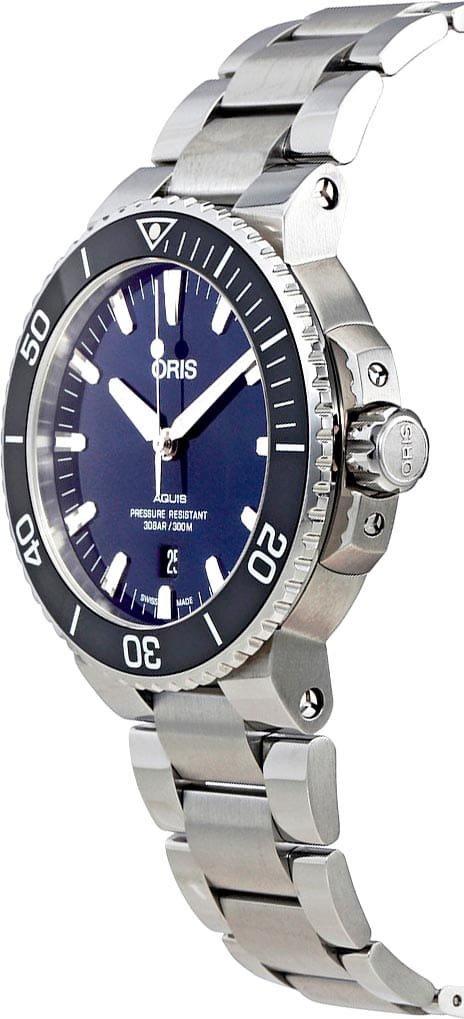 Oris 01 733 7730 4135-07 8 24 05PEB Aquis – это воплощение швейцарского часового мастерства, где традиции встречаются с инновациями. Эти механические наручные часы созданы для тех, кто ценит точность, надежность и безупречный стиль. Корпус из нержавеющей стали диаметром 43,5 мм идеально сбалансирован и элегантен. Циферблат выполнен по технологии Sunray (солнечные лучи). Вращающийся керамический безельБезельВнешний ободок, закрепляющий стекло. В спортивных часах так называется поворотное кольцо с делениями на циферблате, выполняет роль таймера – замеряет отрезки времени на шкале. Неподвижный безель – элемент декора. Однонаправленно вращающийся безель на дайверских часах позволяет фиксировать моменты погружения и выныривания на поверхность.. Сапфировое стеклоСапфировое стеклоПрочный и надёжный материал из кристалла сапфира синтетического происхождения, характеризующийся особой твёрдостью и устойчивостью к царапинам и повреждениям. с антибликовым покрытием защищает циферблат от царапин и обеспечивает отличную читаемость при любом освещении. Окошко даты находится в положении 6 часов. Быстрая установка даты. Браслет из нержавеющей стали идеально дополняют дизайн часов, обеспечивая комфортное ношение. Люминесцентное покрытиеЛюминесцентное покрытиеПозволяет считывать показания времени в темноте. Производители наносят на стрелки, часовые индексы, безель или поверхность циферблата светонакопительный состав, дающий холодное свечение. стрелок и меток позволит вам следить за временем даже в полной темноте. Завинчивающаяся прозрачная задняя крышка с сапфировым стеклом. Раскладная застёжкаРаскладная застёжкаТакой тип застёжки используется только на браслетах из металла. Она никогда не раскрывается полностью, происходит разделение на 2 и более частей. Раскладывающая застёжка снизит вероятность потери часов к минимуму. с удлинением для дайверовУдлинение для дайверовЗастёжка с удлинением для дайверов представляет собой безопасное крепление, которое позволяет надевать часы поверх гидрокостюма. Гибкая застёжка удлиняется на 1-2 миллиметра..