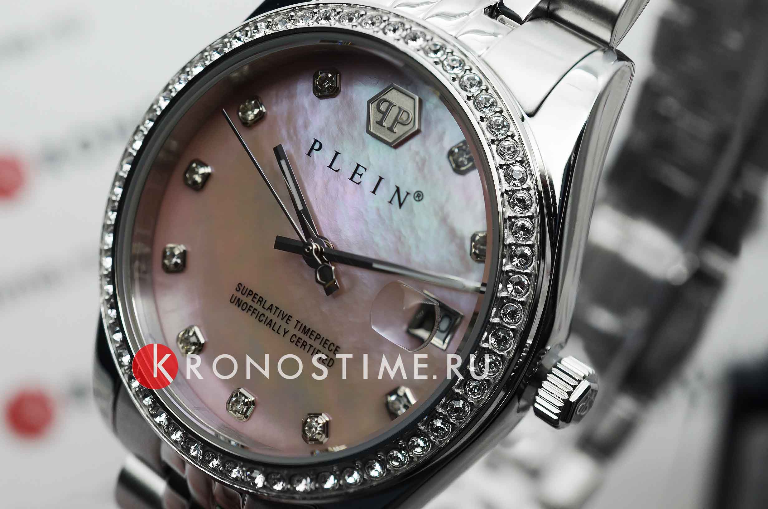 Яркие женские часы  Philipp Plein Date Superlative PWYAA0123 c с минеральным стекломМинеральное стеклоМинеральное стекло представляет собой искусственно выращенный минерал кварца. Такое стекло отличается особой устойчивостью к повреждениям и царапинам. Уступает по некоторым качествам сапфировому стеклу.. Особенные часы для особенных женщин! Ослепительный аксессуар, демонстрирующий роскошь и изысканность.Часы с круглым стальным корпусом. Перламутровый циферблат с метками в виде точек, украшенных кристаллами. Люминесцентное покрытиеЛюминесцентное покрытиеПозволяет считывать показания времени в темноте. Производители наносят на стрелки, часовые индексы, безель или поверхность циферблата светонакопительный состав, дающий холодное свечение. стрелок. Окошко даты с увеличительным стеклом находится в положении 3 часа. Рифленая заводная головка. Застёжка бабочка с кнопкамиЗастёжка "бабочка"Такой вид застёжки дополняется предохранителями, помогающими избежать случайного раскрытия браслета. Обладают изящным исполнением.