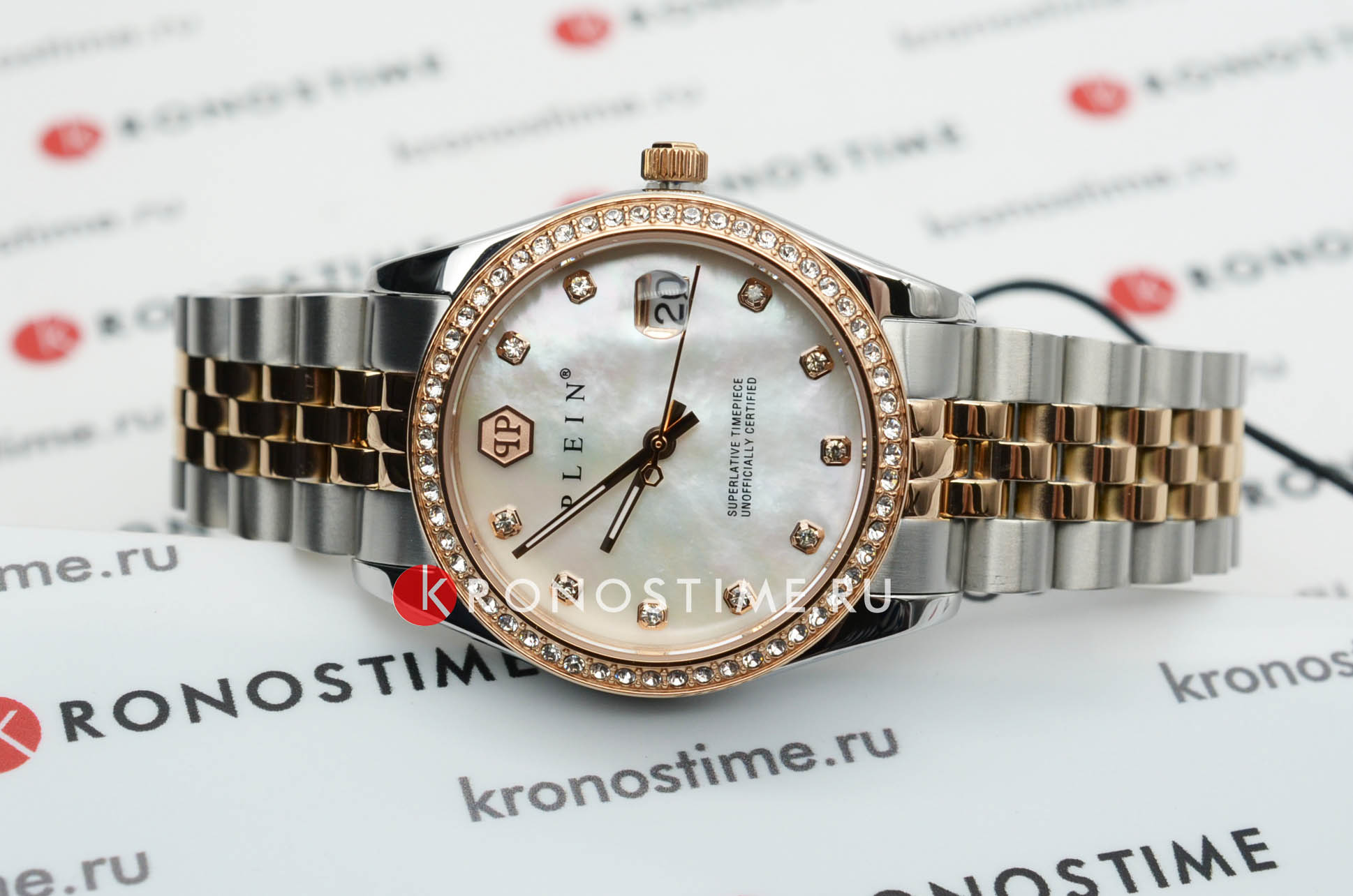 Яркие женские часы Philipp Plein Date Superlative PWYAA0223 c с минеральным стекломМинеральное стеклоМинеральное стекло представляет собой искусственно выращенный минерал кварца. Такое стекло отличается особой устойчивостью к повреждениям и царапинам. Уступает по некоторым качествам сапфировому стеклу.. Особенные часы для особенных женщин! Ослепительный аксессуар, демонстрирующий роскошь и изысканность.Часы с круглым стальным корпусом с IP-покрытиемIP-покрытиеМетод ионного напыления. Демонстрирует повышенную устойчивость к истиранию, окислению и химическим веществам. Под воздействием высокого давления и температуры около 1500°C молекулы металла надёжно соединяются с частицами корпуса часов.. Перламутровый циферблат с метками в виде точек, украшенных кристаллами. Люминесцентное покрытиеЛюминесцентное покрытиеПозволяет считывать показания времени в темноте. Производители наносят на стрелки, часовые индексы, безель или поверхность циферблата светонакопительный состав, дающий холодное свечение. стрелок. Окошко даты с увеличительным стеклом находится в положении 3 часа. Рифленая заводная головка. Стальной браслет на застёжке бабочка с кнопкамиЗастёжка "бабочка"Такой вид застёжки дополняется предохранителями, помогающими избежать случайного раскрытия браслета. Обладают изящным исполнением.