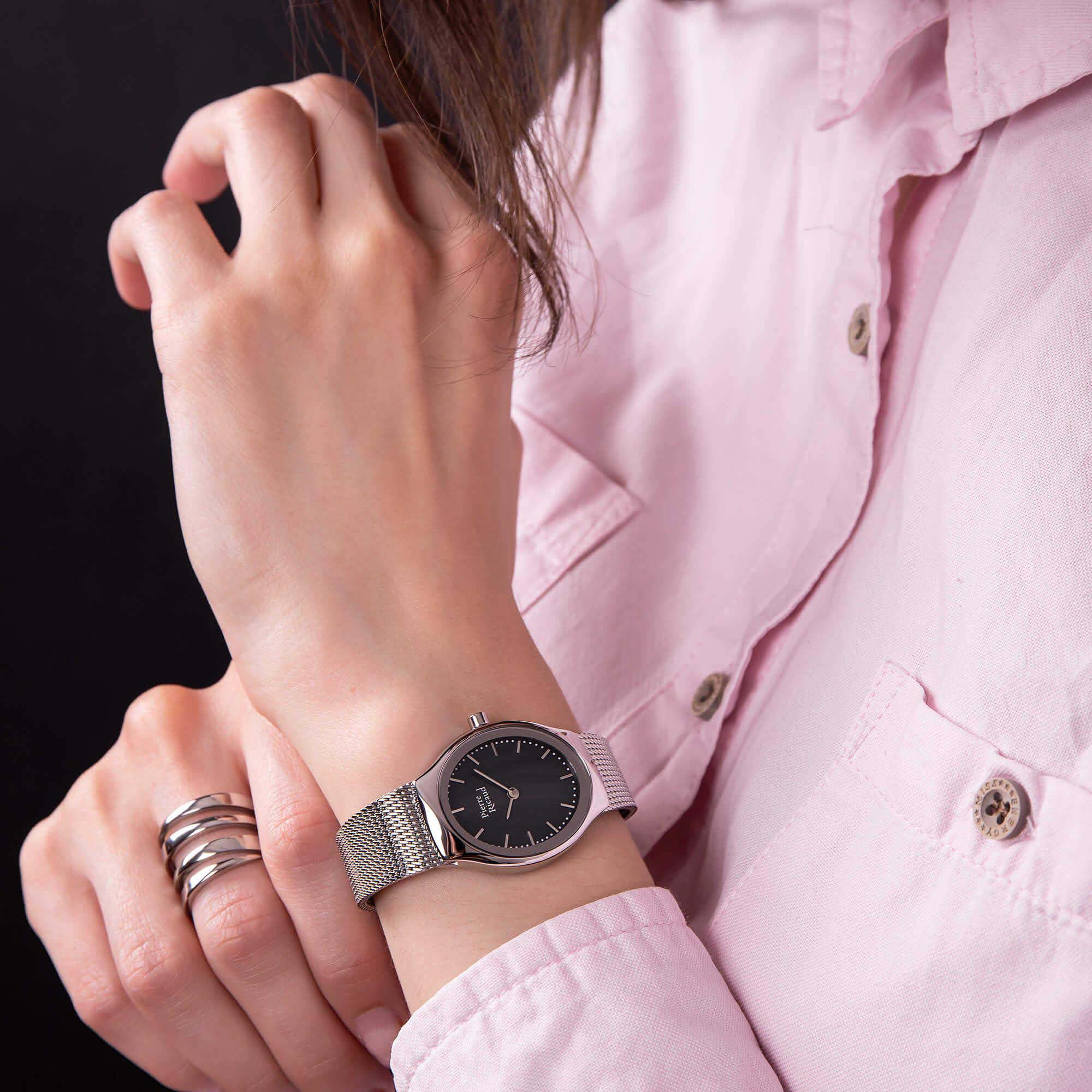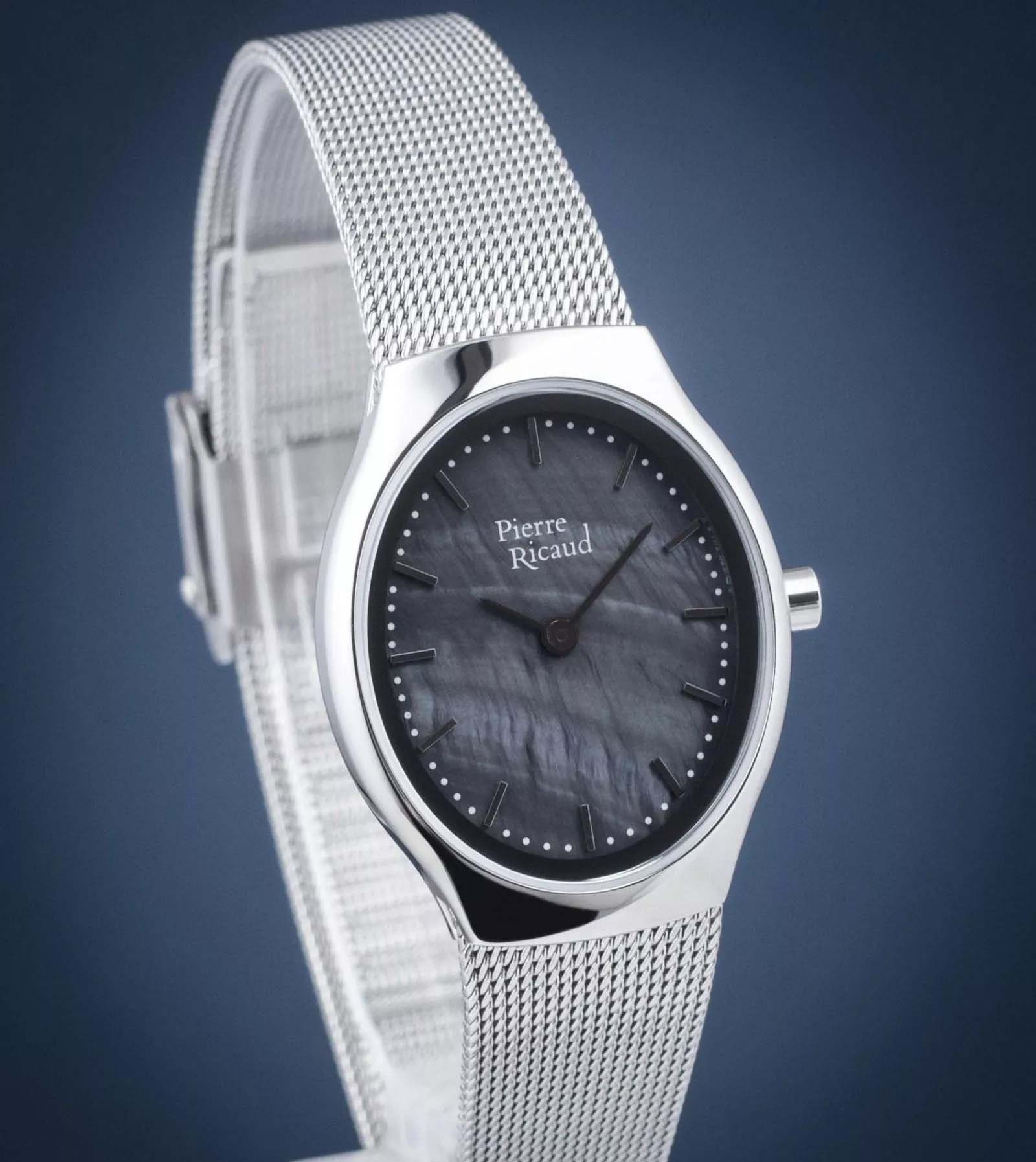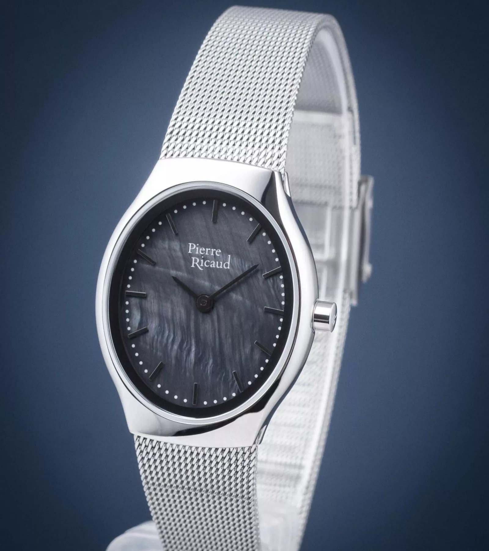 Женские немецкие часы с минеральным стекломМинеральное стеклоМинеральное стекло представляет собой искусственно выращенный минерал кварца. Такое стекло отличается особой устойчивостью к повреждениям и царапинам. Уступает по некоторым качествам сапфировому стеклу. Pierre Ricaud P22049.511EQ, кварцевый механизм с высокой точностью. Класс водозащиты: 30 метров, позволит защитить корпус от случайных брызг или капель дождя. Корпус часов изготовлен из стали. Стальной браслет на раскладной застёжкеРаскладная застёжкаТакой тип застёжки используется только на браслетах из металла. Она никогда не раскрывается полностью, происходит разделение на 2 и более частей. Раскладывающая застёжка снизит вероятность потери часов к минимуму..