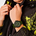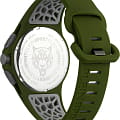 Дерзкий аксессуар со смелым, бунтарским дизайном будет с вами в любом приключении. Мужские часы-хронографХронографФункция позволяет измерять отрезки времени с особой точностью: часы, минуты, секунды. Верным признаком хронографа является наличие на циферблате 3 дополнительных окошек-счётчиков. с секундомеромСекундомерСекундоме́р — прибор, способный измерять интервалы времени с точностью до долей секунды. с тахиметромТахиметрРазмеченная шкала, располагается на ободке или безеле часов. Тахиметр позволяет рассчитать скорость на определённом участке пути, расстояние измеряется в километрах или милях.. Корпус часов изотовлен из нержавеющей стали с IP-покрытиемIP-покрытиеМетод ионного напыления. Демонстрирует повышенную устойчивость к истиранию, окислению и химическим веществам. Под воздействием высокого давления и температуры около 1500°C молекулы металла надёжно соединяются с частицами корпуса часов.. Циферблат с камуфляжным рисунком дополнен паттерном ''след когтей''. Метки в виде штрихов, фирменное лого в виде тигра в положении 12 часов. Окошко даты находится между часовыми метками 4 и 5. Рифленая заводная головка с защитой. Класс водозащиты: 50 метров, позволит защитить корпус от случайных брызг или капель дождя. Силиконовый ремешок на стандартной застежке.