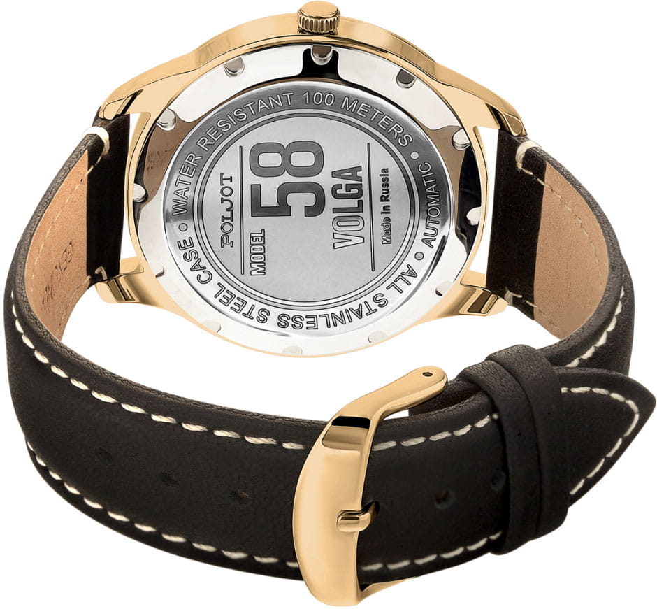 Poljot 8205.589025 — классические механические мужские часы с автоподзаводом, сочетающие традиции отечественного часового производства и лаконичный современный стиль. Корпус из нержавеющей стали с PVD-покрытиемPVDУльтратонкое покрытие наносится в технике вакуумного напыления, сочетает в себе нитрид титана особой прочности со слоем золота или оксида хрома. Несёт в себе декоративную или защитную функцию.  подчёркивает надёжность и сдержанную элегантность модели, а глубокий циферблат с минималистичной разметкой, аккуратным окном даты и секундным акцентом придаёт образу динамичность. Механизм с автоподзаводом обеспечивает стабильную работу и плавный ход стрелок, подчёркивая инженерную точность исполнения. Прочное минеральное стеклоМинеральное стеклоМинеральное стекло представляет собой искусственно выращенный минерал кварца. Такое стекло отличается особой устойчивостью к повреждениям и царапинам. Уступает по некоторым качествам сапфировому стеклу. защищает циферблат, а ремешок из натуральной кожи с классической текстурой крокодила обеспечивает комфорт и благородный внешний вид. Poljot — воплощение надёжности, традиций и мужской элегантности, созданное для тех, кто ценит качество и уверенность в каждой детали.