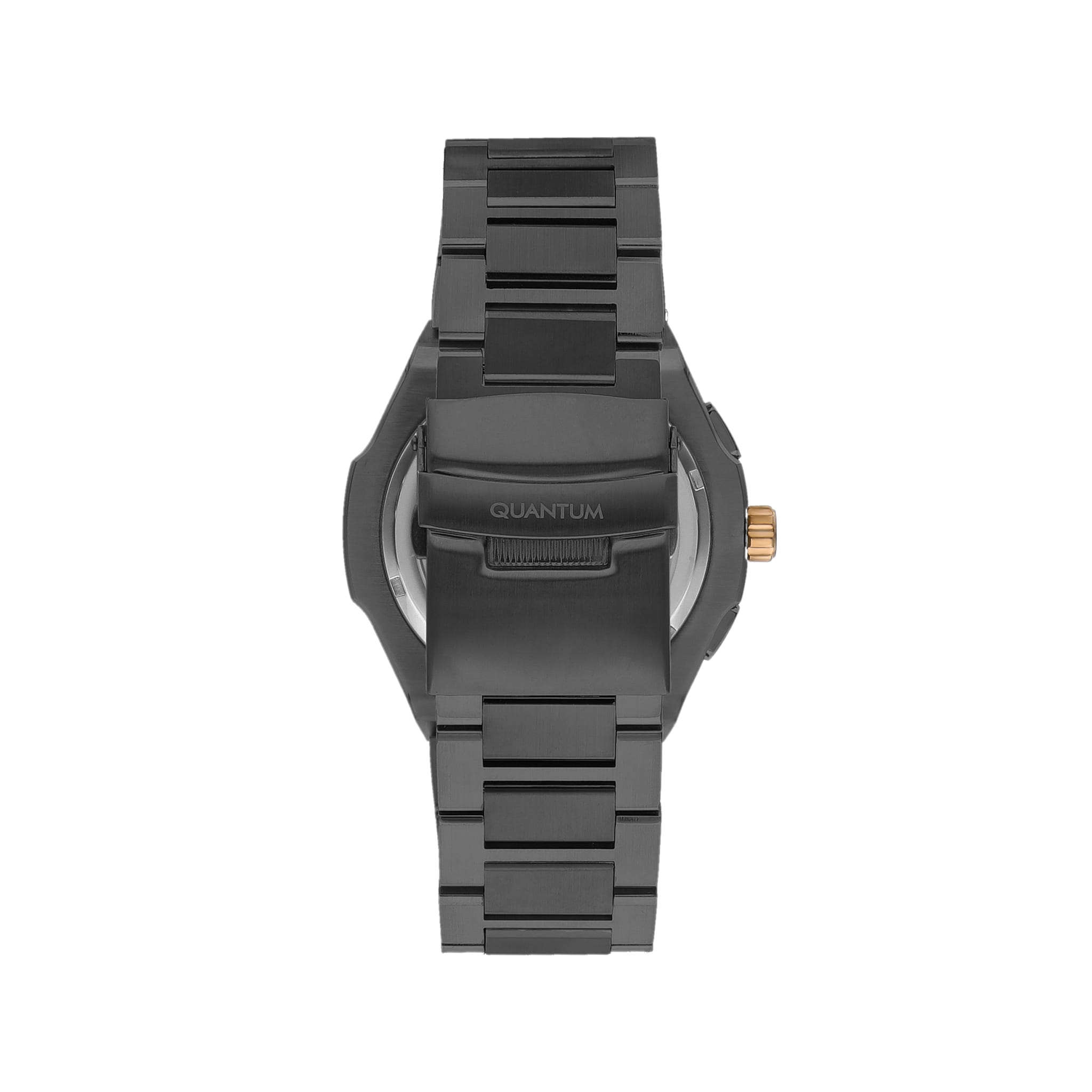 Мужские часы Quantum ADG1032.070, кварцевый механизм с высокой точностью. Класс водозащиты: 100 метров, позволит плавать, нырять и заниматься другими водными видами спорта. Корпус и браслет часов изготовлены из стали с PVD-покрытиемPVDУльтратонкое покрытие наносится в технике вакуумного напыления, сочетает в себе нитрид титана особой прочности со слоем золота или оксида хрома. Несёт в себе декоративную или защитную функцию.. Стальной браслет на раскладной застёжкеРаскладная застёжкаТакой тип застёжки используется только на браслетах из металла. Она никогда не раскрывается полностью, происходит разделение на 2 и более частей. Раскладывающая застёжка снизит вероятность потери часов к минимуму.. Стрелки с люминесцентным покрытиемЛюминесцентное покрытиеПозволяет считывать показания времени в темноте. Производители наносят на стрелки, часовые индексы, безель или поверхность циферблата светонакопительный состав, дающий холодное свечение.. На малых циферблатах отображается день недели и текущее время в 24-х часовом формате.