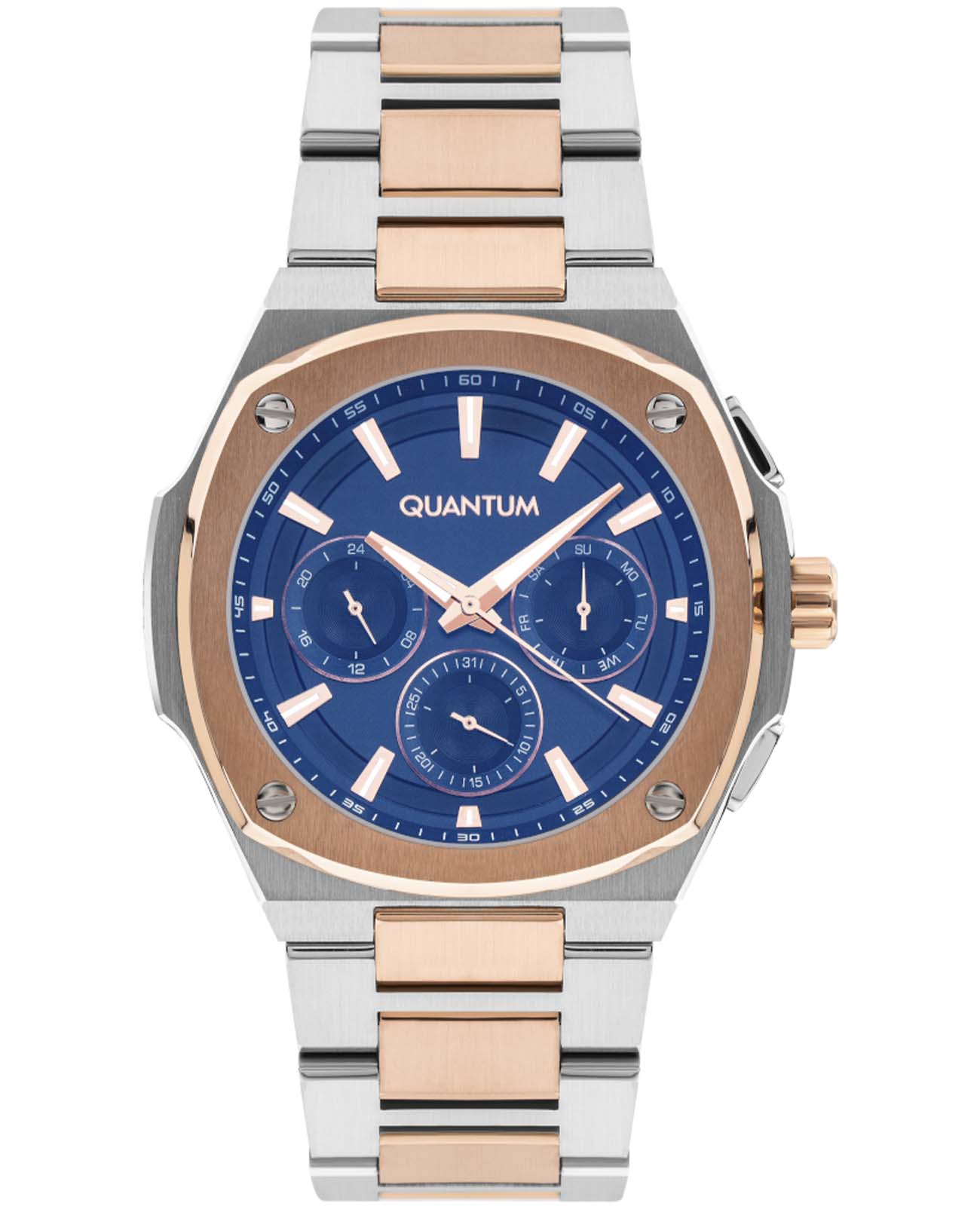 Мужские часы Quantum ADG1032.590, кварцевый механизм с высокой точностью. Класс водозащиты: 100 метров, позволит плавать, нырять и заниматься другими водными видами спорта. Корпус часов изготовлены из стали. Стальной браслет с частичным PVD-покрытиемPVDУльтратонкое покрытие наносится в технике вакуумного напыления, сочетает в себе нитрид титана особой прочности со слоем золота или оксида хрома. Несёт в себе декоративную или защитную функцию. на раскладной застёжкеРаскладная застёжкаТакой тип застёжки используется только на браслетах из металла. Она никогда не раскрывается полностью, происходит разделение на 2 и более частей. Раскладывающая застёжка снизит вероятность потери часов к минимуму.. Стрелки с люминесцентным покрытиемЛюминесцентное покрытиеПозволяет считывать показания времени в темноте. Производители наносят на стрелки, часовые индексы, безель или поверхность циферблата светонакопительный состав, дающий холодное свечение.. На малых циферблатах отображается день недели и текущее время в 24-х часовом формате.
