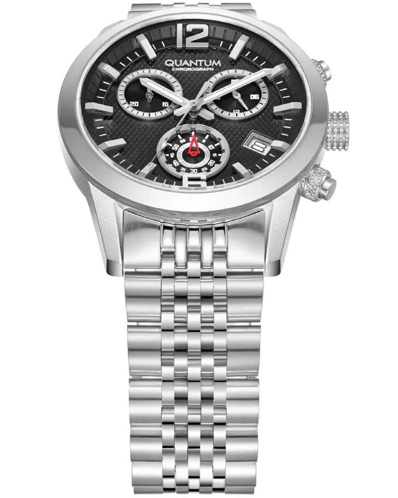 Мужские кварцевые часы Quantum ADG1173.350 из коллекции Adrenaline — надёжный и стильный спортивный аксессуар для повседневного ношения. Корпус круглый, из нержавеющей стали, диаметром 43 мм. Циферблат — чёрный со штриховыми метками. Стекло — минеральноеМинеральное стеклоМинеральное стекло представляет собой искусственно выращенный минерал кварца. Такое стекло отличается особой устойчивостью к повреждениям и царапинам. Уступает по некоторым качествам сапфировому стеклу.. Стрелки и метки с люминесцентным покрытиемЛюминесцентное покрытиеПозволяет считывать показания времени в темноте. Производители наносят на стрелки, часовые индексы, безель или поверхность циферблата светонакопительный состав, дающий холодное свечение.. Функции: хронографХронографФункция позволяет измерять отрезки времени с особой точностью: часы, минуты, секунды. Верным признаком хронографа является наличие на циферблате 3 дополнительных окошек-счётчиков., секундомер, окошко даты. Водонепроницаемость 100 м. Браслет — стальной на раскладной застёжкеРаскладная застёжкаТакой тип застёжки используется только на браслетах из металла. Она никогда не раскрывается полностью, происходит разделение на 2 и более частей. Раскладывающая застёжка снизит вероятность потери часов к минимуму.. Идеальный выбор для тех, кто ценит турецкий дизайн и повседневную функциональность.