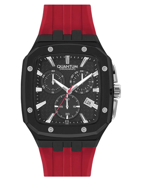 Мужские наручные часы-хронографХронографФункция позволяет измерять отрезки времени с особой точностью: часы, минуты, секунды. Верным признаком хронографа является наличие на циферблате 3 дополнительных окошек-счётчиков. Quantum HNG1033.658, кварцевый механизм с высокой точностью. Минеральное стеклоМинеральное стеклоМинеральное стекло представляет собой искусственно выращенный минерал кварца. Такое стекло отличается особой устойчивостью к повреждениям и царапинам. Уступает по некоторым качествам сапфировому стеклу. устойчивое к появлению царапин, обладающее высокой прозрачностью. Класс водозащиты: 100 метров, позволит плавать, нырять и заниматься другими водными видами спорта. Корпус часов изготовлен из стали с PVD-покрытиемPVDУльтратонкое покрытие наносится в технике вакуумного напыления, сочетает в себе нитрид титана особой прочности со слоем золота или оксида хрома. Несёт в себе декоративную или защитную функцию.. Стрелки и метки с люминесцентным покрытиемЛюминесцентное покрытиеПозволяет считывать показания времени в темноте. Производители наносят на стрелки, часовые индексы, безель или поверхность циферблата светонакопительный состав, дающий холодное свечение.. Каучуковый ремешок.