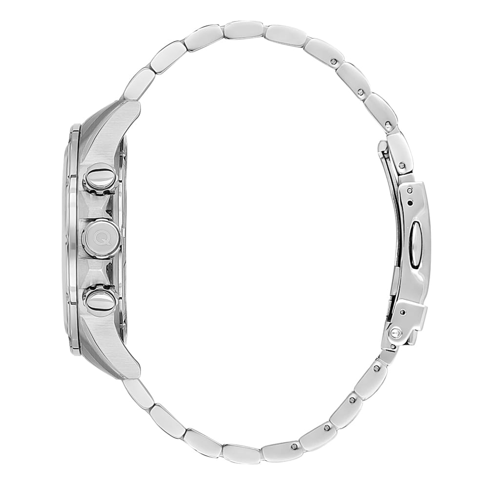 Мужские наручные часы-хронографХронографФункция позволяет измерять отрезки времени с особой точностью: часы, минуты, секунды. Верным признаком хронографа является наличие на циферблате 3 дополнительных окошек-счётчиков. Quantum HNG1067.370, кварцевый механизм с высокой точностью. Минеральное стеклоМинеральное стеклоМинеральное стекло представляет собой искусственно выращенный минерал кварца. Такое стекло отличается особой устойчивостью к повреждениям и царапинам. Уступает по некоторым качествам сапфировому стеклу. устойчивое к появлению царапин, обладающее высокой прозрачностью. Класс водозащиты: 100 метров, позволит плавать, нырять и заниматься другими водными видами спорта. Корпус часов изготовлен из нержавеющей стали. Стрелки с люминесцентным покрытиемЛюминесцентное покрытиеПозволяет считывать показания времени в темноте. Производители наносят на стрелки, часовые индексы, безель или поверхность циферблата светонакопительный состав, дающий холодное свечение.. Стальной браслет на раскладной застёжкеРаскладная застёжкаТакой тип застёжки используется только на браслетах из металла. Она никогда не раскрывается полностью, происходит разделение на 2 и более частей. Раскладывающая застёжка снизит вероятность потери часов к минимуму..