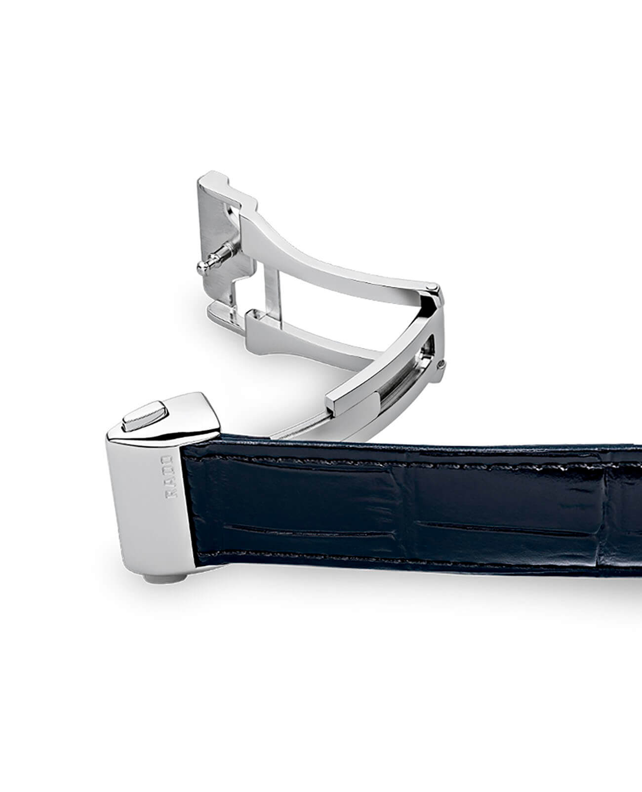Минималистичный синий циферблат с «лучистым» оформлением поможет поддерживать респектабельный деловой имидж, роскошный аксессуар в классическом оформлении может стать главным атрибутом вашего образа. Часы комплектуются автоматическим калибром ETA C07.671 с резервом хода 80 часов. Монолитный корпус сделан из плазменной керамикиВысокотехнологичная плазменная керамикаИнновационный материал, технология запатентована. Выплавление керамики осуществляется в печи при 20 000 °C, белоснежный материал под воздействием ультравысокой температуры приобретает уникальный блеск, присущий металлам., материал принимает температуру тела и обеспечивает комфортное ношение. Прозрачная задняя крышка. Индикатор, демонстрирующий остаточный запас хода. Стильный кожаный ремешок. Диаметр корпуса: 43 мм.