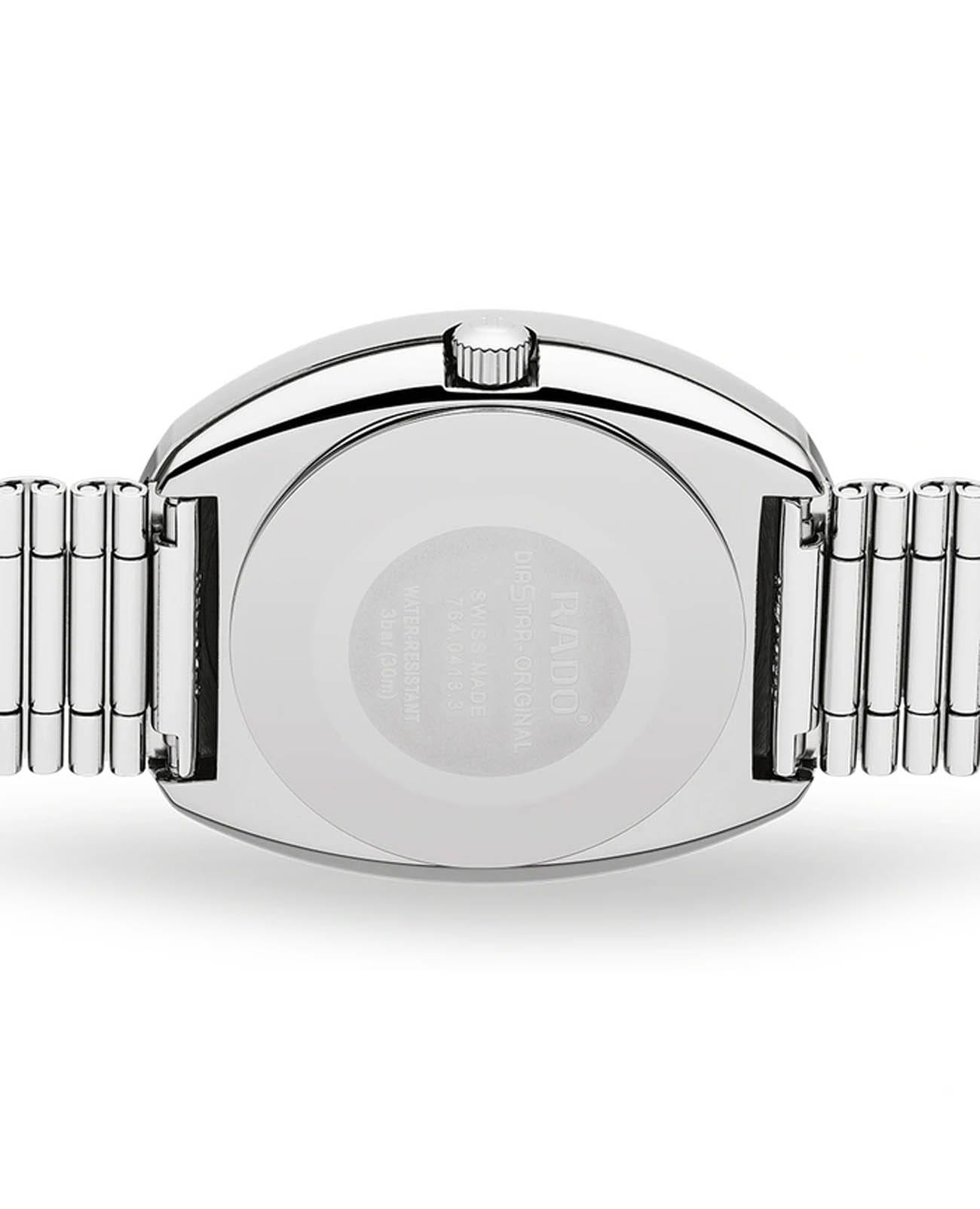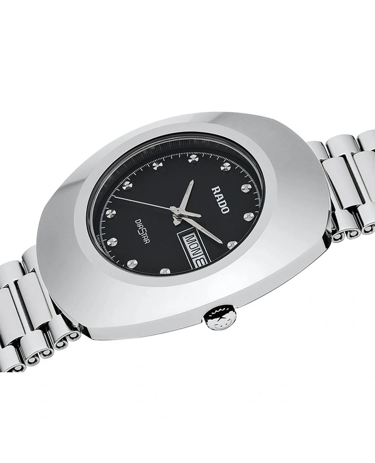 Мужские часы Rado The Original R12391153 с надёжным кварцевым механизмом. Корпус и браслет часов выполнены из нержавеющей стали. Стрелки с люминесцентным покрытиемЛюминесцентное покрытиеПозволяет считывать показания времени в темноте. Производители наносят на стрелки, часовые индексы, безель или поверхность циферблата светонакопительный состав, дающий холодное свечение. Super-LumiNova. Стальной браслет на раскладной застёжкеРаскладная застёжкаТакой тип застёжки используется только на браслетах из металла. Она никогда не раскрывается полностью, происходит разделение на 2 и более частей. Раскладывающая застёжка снизит вероятность потери часов к минимуму.. Класс водозащиты: 30 метров, позволит защитить корпус от случайных брызг или капель дождя. Циферблат инкрустирован сапфирами. Окошки дня недели и даты находятся в положении 3 часа.
