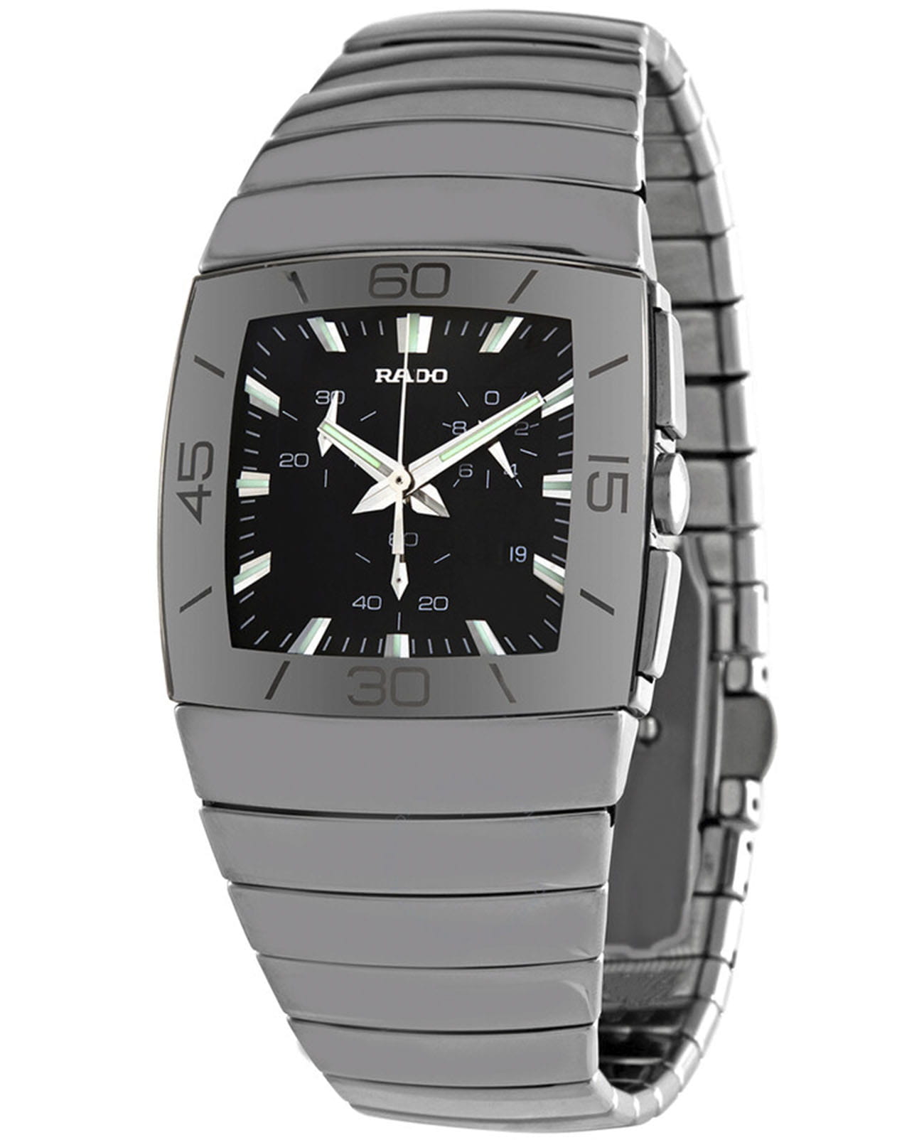 Женские швейцарские часы Rado Sintra R13434172, кварцевый механизм с высокой точностью. Сапфировое стеклоСапфировое стеклоПрочный и надёжный материал из кристалла сапфира синтетического происхождения, характеризующийся особой твёрдостью и устойчивостью к царапинам и повреждениям. устойчивое к появлению царапин, обладающее высокой прозрачностью. Класс водозащиты: 30 метров, позволит защитить корпус от случайных брызг или капель дождя. Корпус и браслет из высокотехнологичной керамикиВысокотехнологичная керамикаИнновационный запатентованный Rado материал с гладкой или матовой поверхностью. Керамика за счёт кристаллической структуры обладает повышенной устойчивостью от возникновения царапин. Материал способен принимать температуру тела человека, обеспечивая невероятный комфорт при ношении.. Хронограф - три дополнительных циферблата, отображающих: 30 минут, 12 часов и 1/10 секунды. Стрелки и метки с люминесцентным покрытиемЛюминесцентное покрытиеПозволяет считывать показания времени в темноте. Производители наносят на стрелки, часовые индексы, безель или поверхность циферблата светонакопительный состав, дающий холодное свечение.. Отображение даты в положении "4 часа".