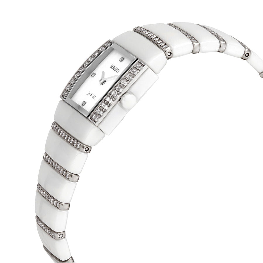 Часы Rado Sintra R13633709, произведение искусства и технологическое чудо, станут прекрасным дополнением к коллекции. Эти швейцарские часы оснащены кварцевым механизмом и тремя стрелками, заключенным в корпус из керамики.  Браслет изготовлен из высокотехнологичной керамикиВысокотехнологичная керамикаИнновационный запатентованный Rado материал с гладкой или матовой поверхностью. Керамика за счёт кристаллической структуры обладает повышенной устойчивостью от возникновения царапин. Материал способен принимать температуру тела человека, обеспечивая невероятный комфорт при ношении.. Часы украшены брилиантами. Сапфировое стеклоСапфировое стеклоПрочный и надёжный материал из кристалла сапфира синтетического происхождения, характеризующийся особой твёрдостью и устойчивостью к царапинам и повреждениям. устойчивое к появлению царапин, обладающее высокой прозрачностью. Класс водозащиты: 30 метров, позволит защитить корпус от случайных брызг или капель дождя.