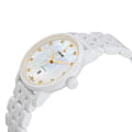 Женские механические швейцарские часы с автоподзаводом Rado Diamaster R14044917. Сапфировое стеклоСапфировое стеклоПрочный и надёжный материал из кристалла сапфира синтетического происхождения, характеризующийся особой твёрдостью и устойчивостью к царапинам и повреждениям. устойчивое к мелким механическим повреждениям. Корпус часов изготовлен  из высокотехнологичной керамикиВысокотехнологичная керамикаИнновационный запатентованный Rado материал с гладкой или матовой поверхностью. Керамика за счёт кристаллической структуры обладает повышенной устойчивостью от возникновения царапин. Материал способен принимать температуру тела человека, обеспечивая невероятный комфорт при ношении.. Циферблат украшен бриллиантами. Окошко даты находится в положении 3 часа. Циферблат украшен бриллиантами. Класс водозащиты: 50 метров, позволит защитить корпус от случайных брызг или капель дождя. Браслет из высокотехнологичной керамикиВысокотехнологичная керамикаИнновационный запатентованный Rado материал с гладкой или матовой поверхностью. Керамика за счёт кристаллической структуры обладает повышенной устойчивостью от возникновения царапин. Материал способен принимать температуру тела человека, обеспечивая невероятный комфорт при ношении. на застёжке «бабочка» с кнопкамиЗастёжка "бабочка"Такой вид застёжки дополняется предохранителями, помогающими избежать случайного раскрытия браслета. Обладают изящным исполнением. .