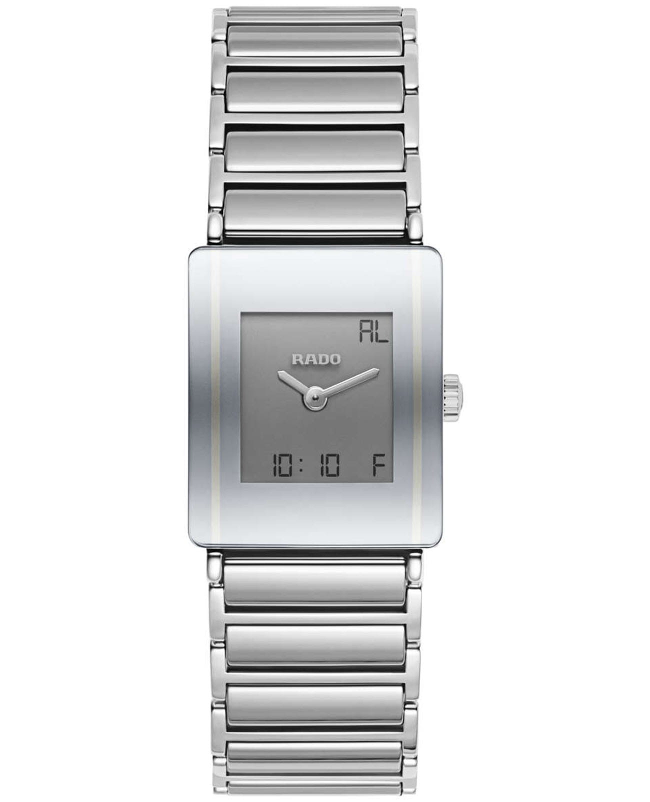 Швейцарские мужские часы c хронографомХронографФункция позволяет измерять отрезки времени с особой точностью: часы, минуты, секунды. Верным признаком хронографа является наличие на циферблате 3 дополнительных окошек-счётчиков. и с будильникомБудильникБуди́льник — часы, в заданный момент времени подающие звуковой, световой и/или в редких случаях другой сигнал. Rado Integral R20664152. Сапфировое стеклоСапфировое стеклоПрочный и надёжный материал из кристалла сапфира синтетического происхождения, характеризующийся особой твёрдостью и устойчивостью к царапинам и повреждениям. устойчивое к мелким механическим повреждениям. Корпус часов изготовлен из высокотехнологичной керамикиВысокотехнологичная плазменная керамикаИнновационный материал, технология запатентована. Выплавление керамики осуществляется в печи при 20 000 °C, белоснежный материал под воздействием ультравысокой температуры приобретает уникальный блеск, присущий металлам. и стали. Стрелки с люминесцентным покрытиемЛюминесцентное покрытиеПозволяет считывать показания времени в темноте. Производители наносят на стрелки, часовые индексы, безель или поверхность циферблата светонакопительный состав, дающий холодное свечение.. Класс водозащиты: 30 метров, позволит защитить корпус от случайных брызг или капель дождя. Браслет из высокотехнологичной керамикиВысокотехнологичная керамикаИнновационный запатентованный Rado материал с гладкой или матовой поверхностью. Керамика за счёт кристаллической структуры обладает повышенной устойчивостью от возникновения царапин. Материал способен принимать температуру тела человека, обеспечивая невероятный комфорт при ношении. и стали на раскладной застёжкеРаскладная застёжкаТакой тип застёжки используется только на браслетах из металла. Она никогда не раскрывается полностью, происходит разделение на 2 и более частей. Раскладывающая застёжка снизит вероятность потери часов к минимуму..
