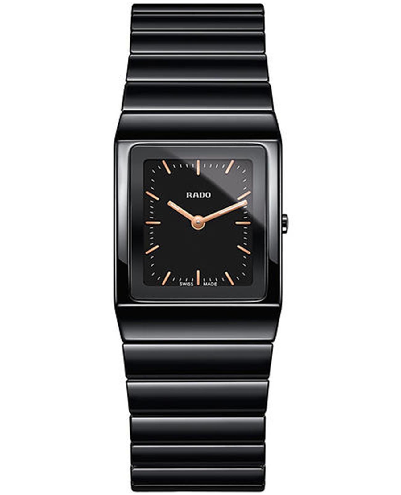 Швейцарские женские Rado Ceramica R21348162, кварцевый механизм с высокой точностью. Сапфировое стеклоСапфировое стеклоПрочный и надёжный материал из кристалла сапфира синтетического происхождения, характеризующийся особой твёрдостью и устойчивостью к царапинам и повреждениям. устойчивое к появлению царапин, обладающее высокой прозрачностью. Корпус часов изготовлен из нержавеющей стали и керамики. Класс водозащиты: 30 метров, позволит защитить корпус от случайных брызг или капель дождя. Керамический браслет на застёжке-бабочке с кнопкамиЗастёжка "бабочка"Такой вид застёжки дополняется предохранителями, помогающими избежать случайного раскрытия браслета. Обладают изящным исполнением. .
