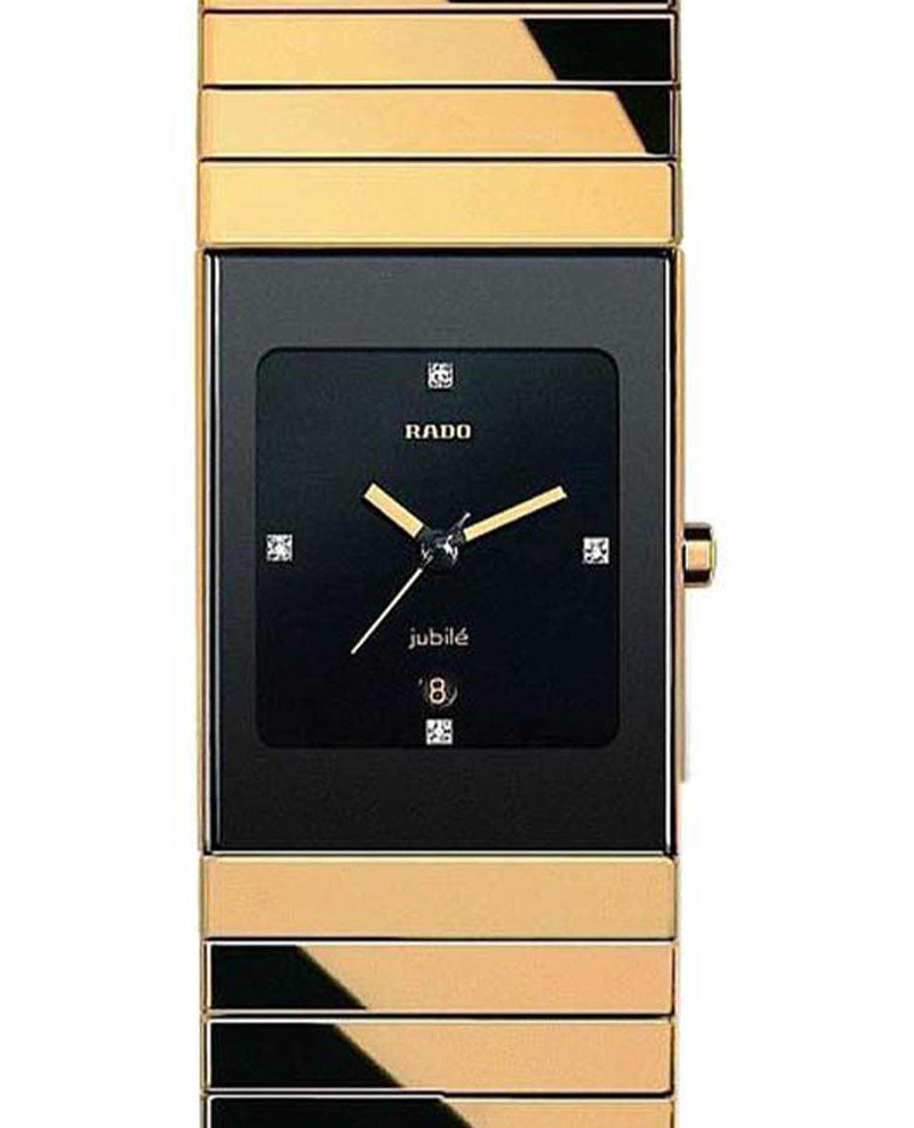 Швейцарские женские Rado Ceramica R21894742, кварцевый механизм с высокой точностью. Сапфировое стеклоСапфировое стеклоПрочный и надёжный материал из кристалла сапфира синтетического происхождения, характеризующийся особой твёрдостью и устойчивостью к царапинам и повреждениям. устойчивое к появлению царапин, обладающее высокой прозрачностью. Корпус часов изготовлен из нержавеющей стали с PVD-покрытиемPVDУльтратонкое покрытие наносится в технике вакуумного напыления, сочетает в себе нитрид титана особой прочности со слоем золота или оксида хрома. Несёт в себе декоративную или защитную функцию. и керамики. Класс водозащиты: 30 метров, позволит защитить корпус от случайных брызг или капель дождя. Браслет из керамики на раскладной застёжкойРаскладная застёжкаТакой тип застёжки используется только на браслетах из металла. Она никогда не раскрывается полностью, происходит разделение на 2 и более частей. Раскладывающая застёжка снизит вероятность потери часов к минимуму.. 4 бриллианта на циферблате.
